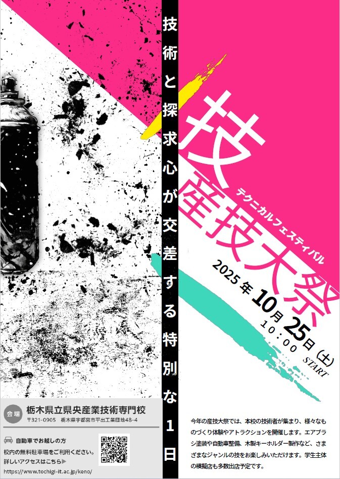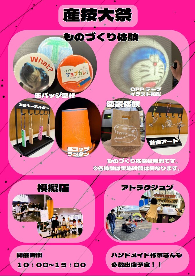 【お知らせ】 10月25日(土)は産技大祭‼️ ・ものづくり体験(紙コップランタン、針金アート etc.) ・各種アトラクション🎯 ・おいしい学生模擬店🍟 今年は、ハンドメイド作家さんも多数出展予定! とちぎものづくり選手権も同時開催!! 遊びに来てね😆 #栃木県 #宇都宮市 #学校祭 #産技大祭 #産技校 pic.x.com/16O6V2SaIf