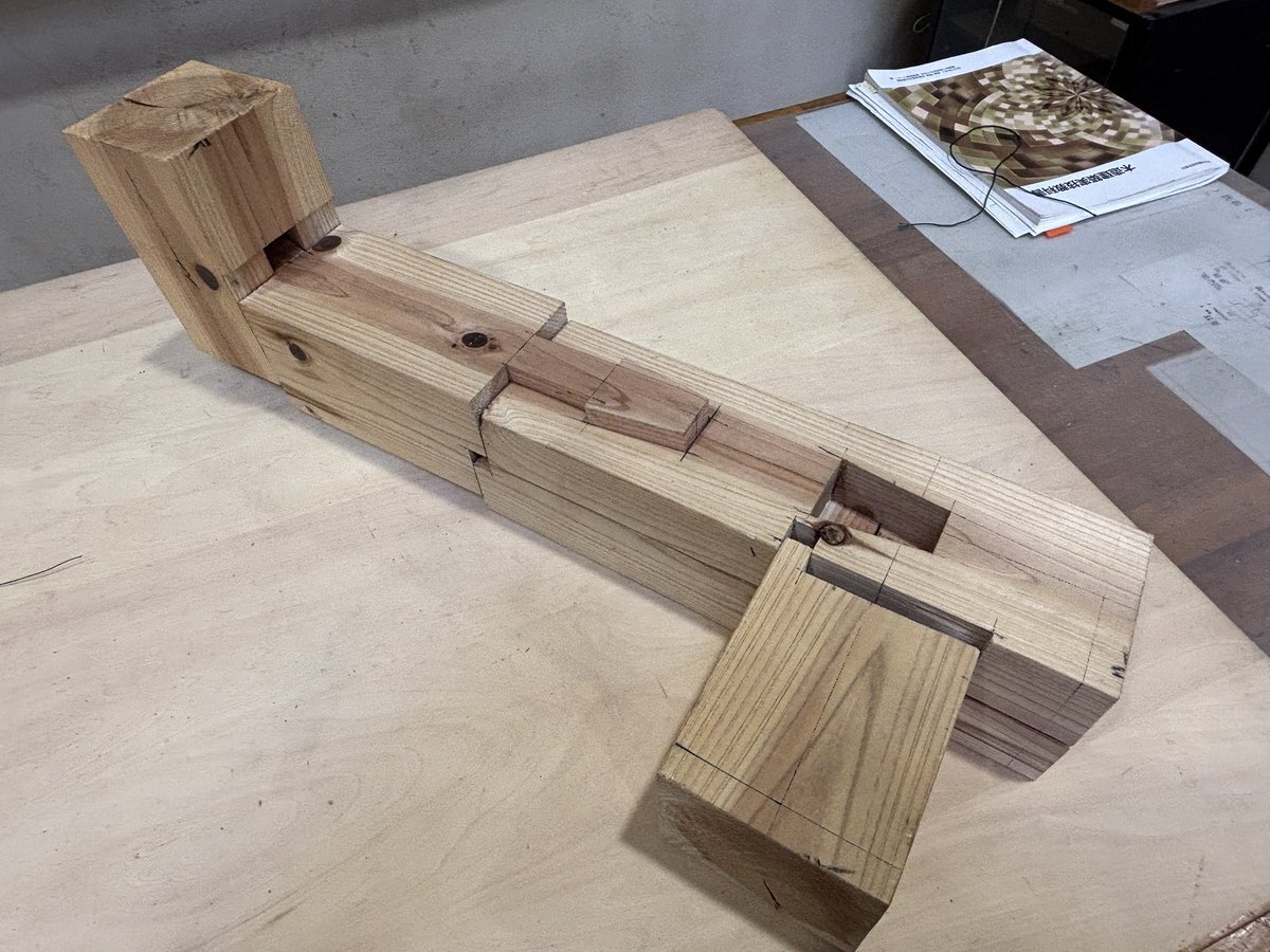 【木造建築科】 秋休みに入りましたが、 1年生は、4月から実施してきた継手や仕口のまとめとして組み合わせ課題に取り組みました。 自ら作業手順を考え、墨付けし加工しています! #産技校 #木造建築 #建築大工 pic.x.com/6X6EWFoGeV