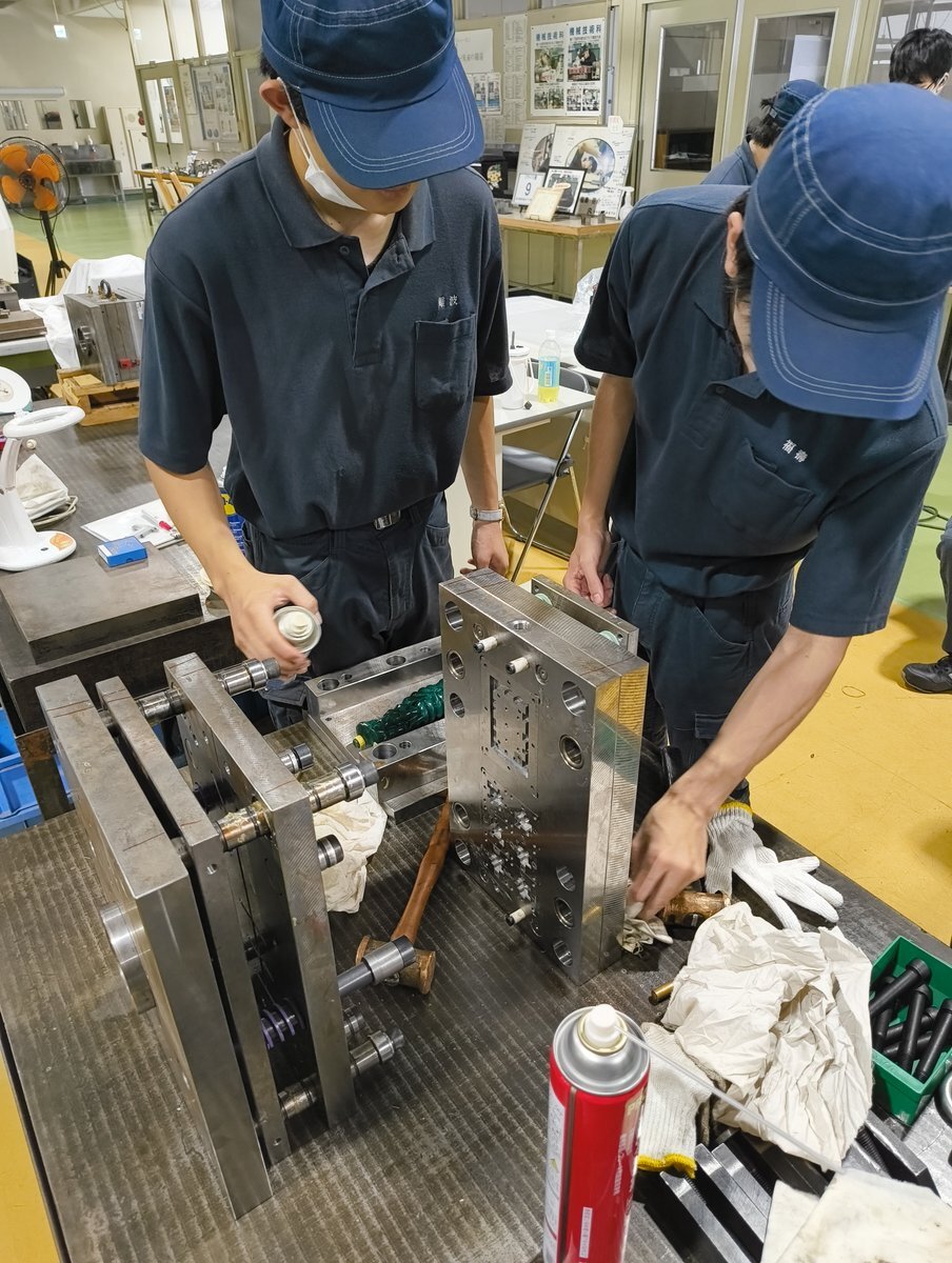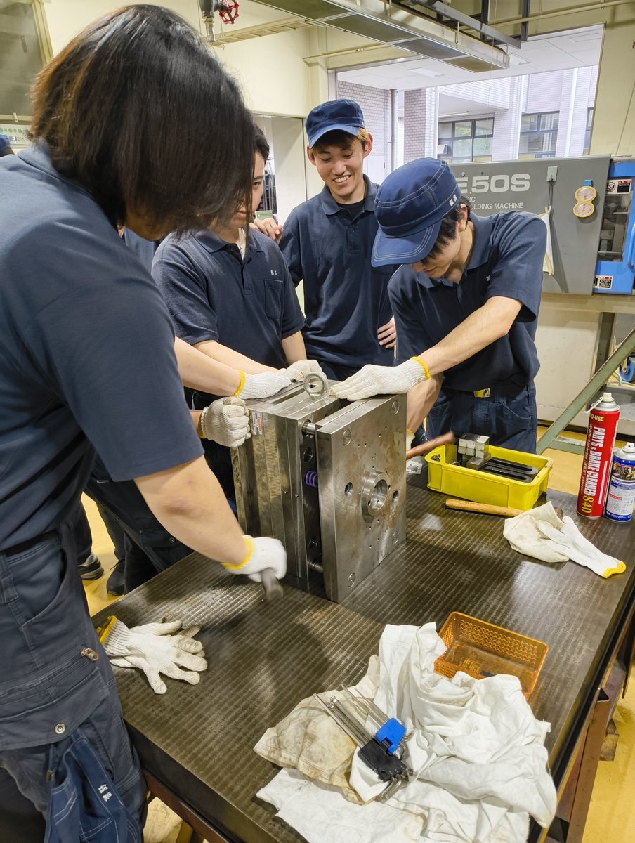 【機械技術科】 今回の実習は射出成形金型の分解! 射出成形は、スマホケースから車の内外装の部品の製造にまで用いられる技術です 分解清掃を行いながらじっくり観察し、その技術の中核となる金型の構造と各部の役割を学びます👀 #栃木県 #産技校 pic.x.com/6I18y1boR3