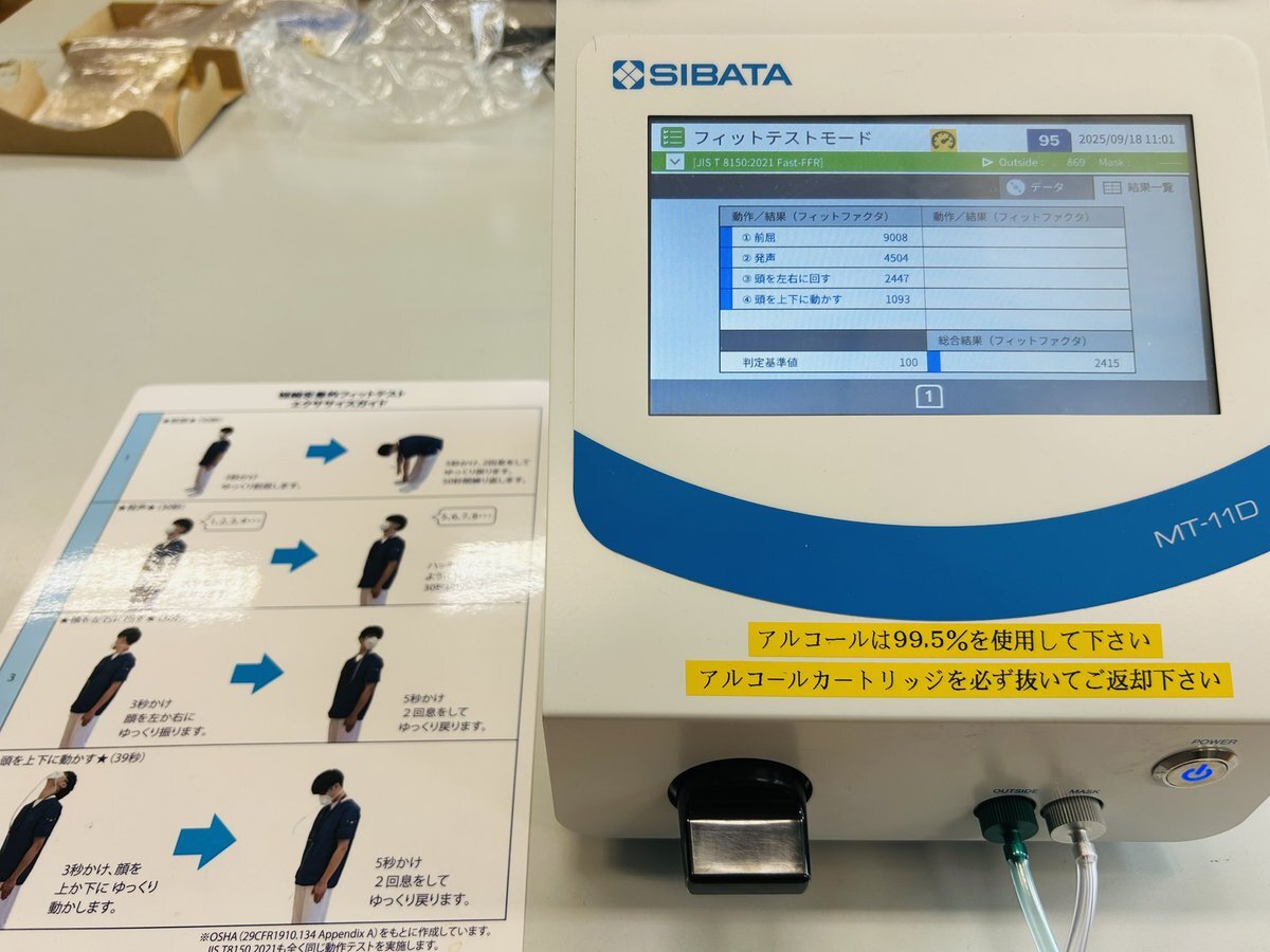 【金属加工科】 溶接やグラインダー作業には防塵マスクが必須です!そのため法令で義務化された、マスクの装着状態をチェックする「フィットテスト」を行いました! もちろん全員合格でした! #栃木県 #産技校 #金属 #マスク #フィットテスト #安全衛生 pic.x.com/Y3nRo98YyA