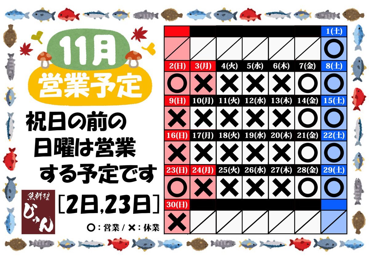 明日23日を営業予定としていましたが、 父の足の状態が悪く、 明日営業してもお客様にご迷惑をお掛けしてしまうため、 お休みとさせていただきます。 大変、申し訳ございません🙇♂️ #居酒屋じゅん #静岡市 #用宗 x.com/jun_izakaya/st…