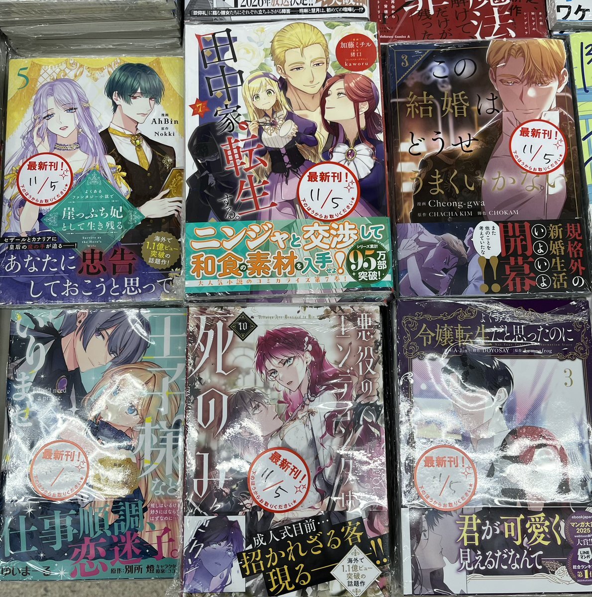 さらに【コミック新刊🆕】 KADOKAWAフロースコミックスより #田中家転生する。⑦ #悪役のエンディングは死のみ#この結婚はどうせうまくいかない#崖っぷち妃として生き残る#王子様などいりません など入荷しました〜👑✨ ぜひ寄り道してください。 お待ちしていまーす🤗 pic.x.com/cMxyOV8fNV
