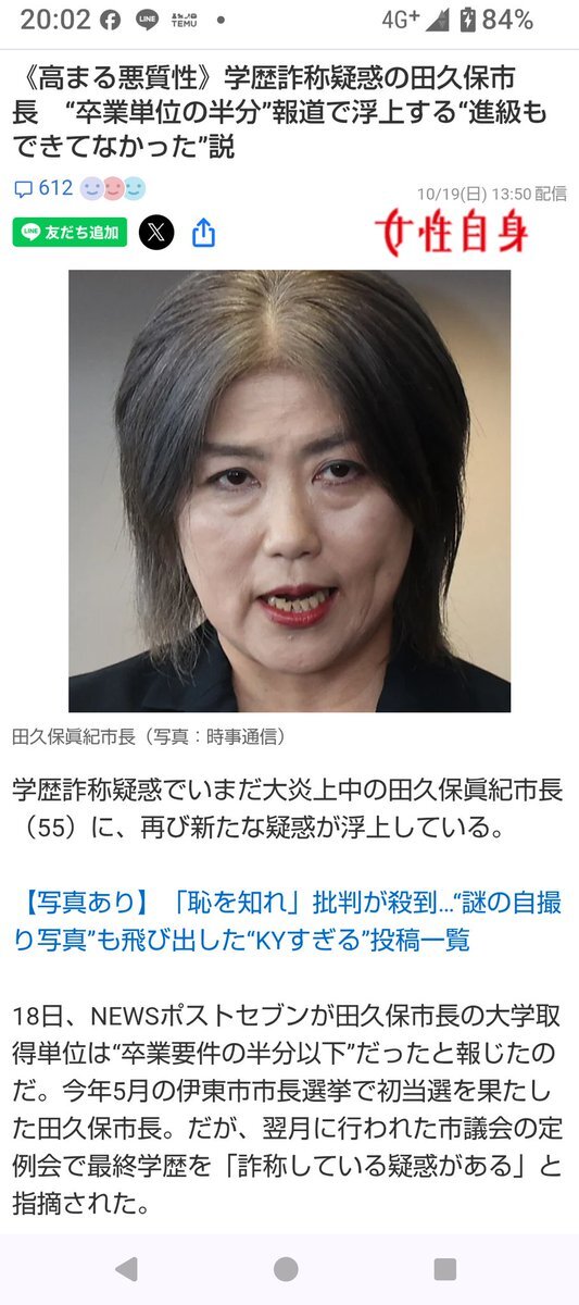 未だに田久保市長を追い詰めるしつこい者たち。学歴詐称なら何でこの人ばかり叩く?緑のふるだぬきの方がよっぽど酷いぞ? よってたかってイジメる。胸糞悪いカスメディア共。この人はメガソーラー反対派だから応援しようぜ👍