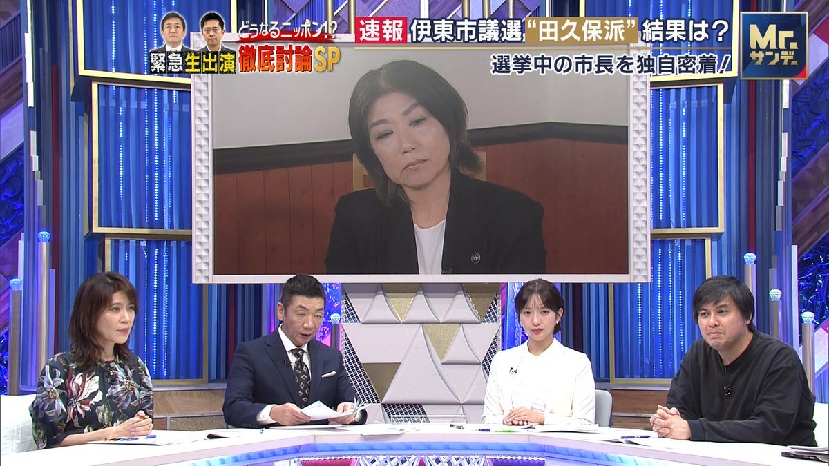 フジテレビMr.サンデーに田久保市長が生出演 勇気出して出演したのに、宮根をはじめみんなで田久保市長に学歴詐称を詰めてる もうよくない? ある程度聞かれることは仕方ないけどそれしか聞いてない うんざり 市議選について伺うって騙して出演させたんだろうな もうイジメでしかない