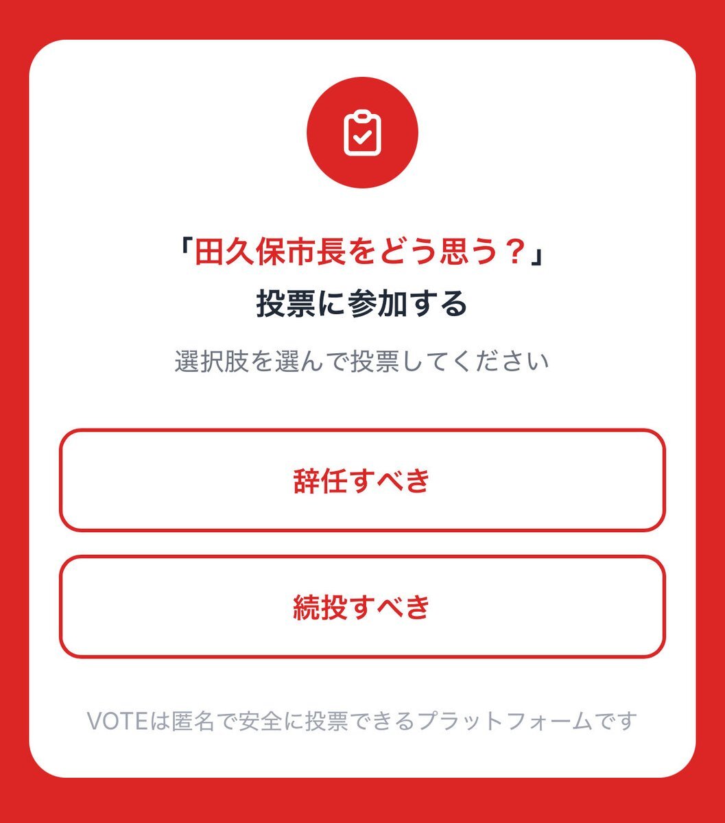 本日は田久保市長の学歴詐称問題で話題の伊東市議会選開票が行われます! みなさんは田久保市長をどう思いますか? 投票よろしくお願いします!! #投票を可視化する #田久保市長 #伊東市議会議員選挙 【田久保市長をどう思う??】 vote-jt.com/invite_vote?to…