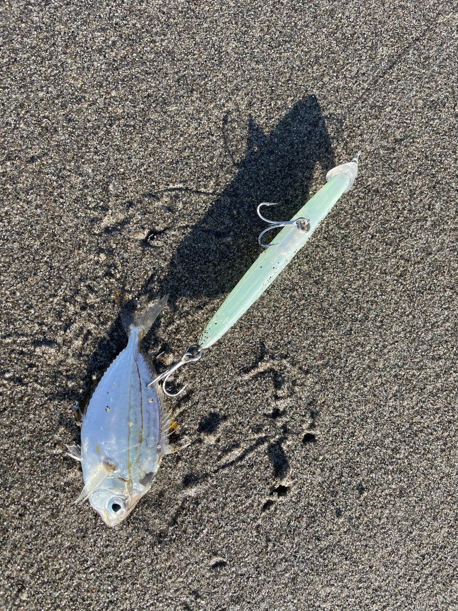 今日の朝マズメは鯵1のみ 連発せず😭 バッカンで生かしておいたのでリリース 15分おきくらいに日曜ロードショーのOPみたいな波が来る🌊笑 #遠州灘 #豊橋サーフ #田原サーフ pic.x.com/wEbMihNycX