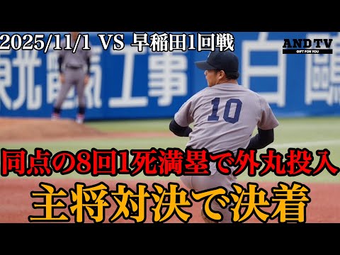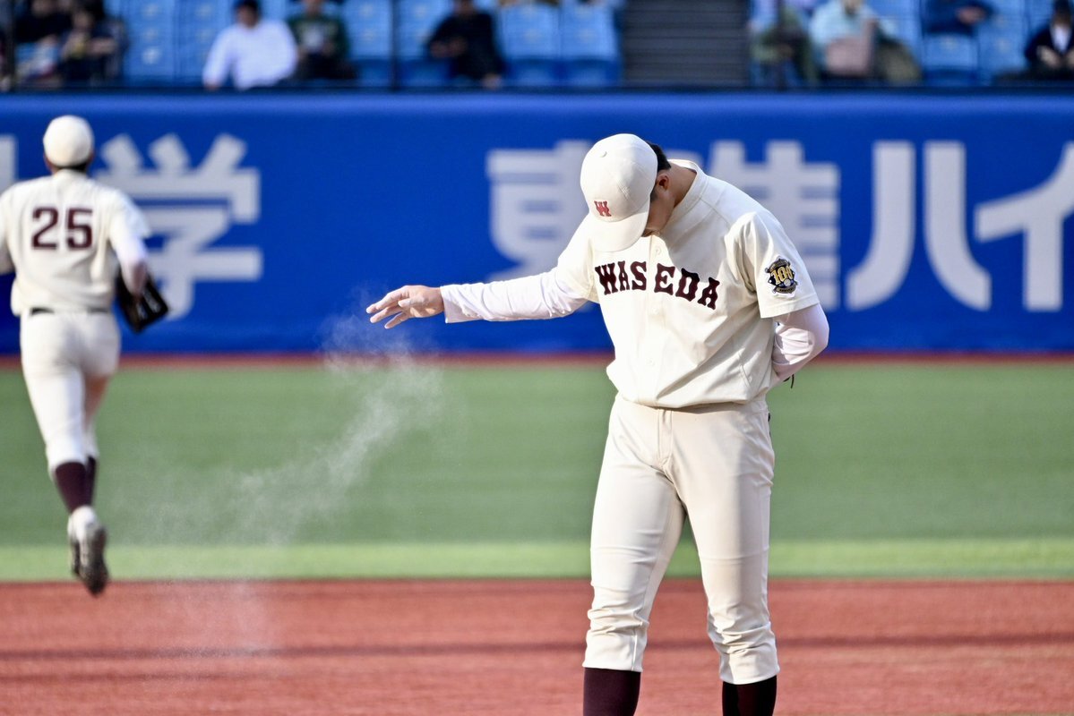 【#六大学野球】 早大 vs 慶大 2025.11.01 ジャイアンツからドラフト2位指名を受けた 早大・田和廉投手が9回に登板しました!🔥 #wasedabbc #田和廉 #巨人 #giants pic.x.com/xC6Y0l9TdW