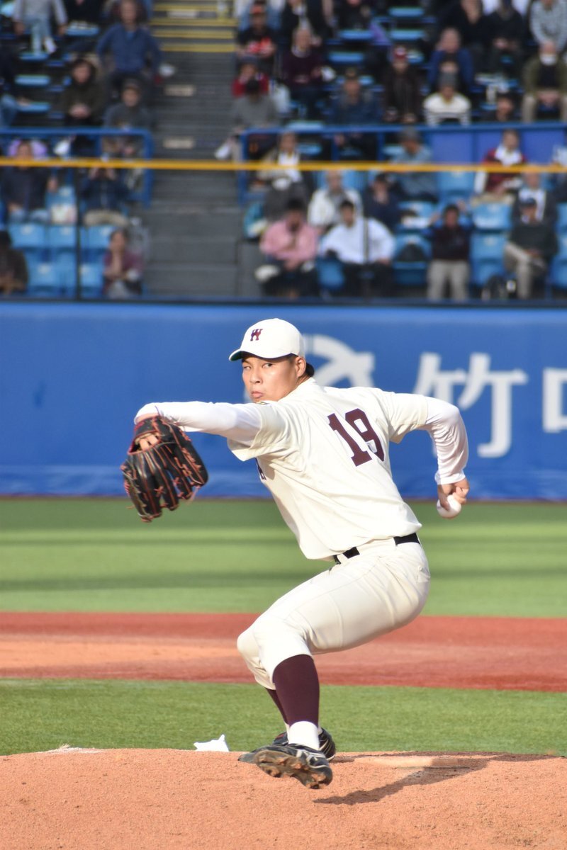 📷2025.11.1 🏟️神宮球場 🏫早稲田大学 #田和廉 ※読売ジャイアンツ ドラフト2位 #早稲田大学野球部 #ジャイアンツ 急な西陽で色がぐちゃぐちゃ😅 pic.x.com/q3vJxEETKQ