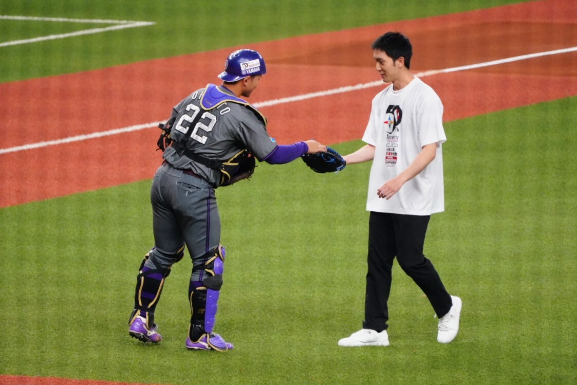 【#第50回社会人野球日本選手権大会】大会第10日の「 #レジェンド始球式 」は #オリックス の #田嶋大樹 投手(元 #JR東日本 )。「すごく緊張した」ため、あえてゆっくりめのボールを投げ込みました。「 #都市対抗 pic.x.com/HeoIJOljrx