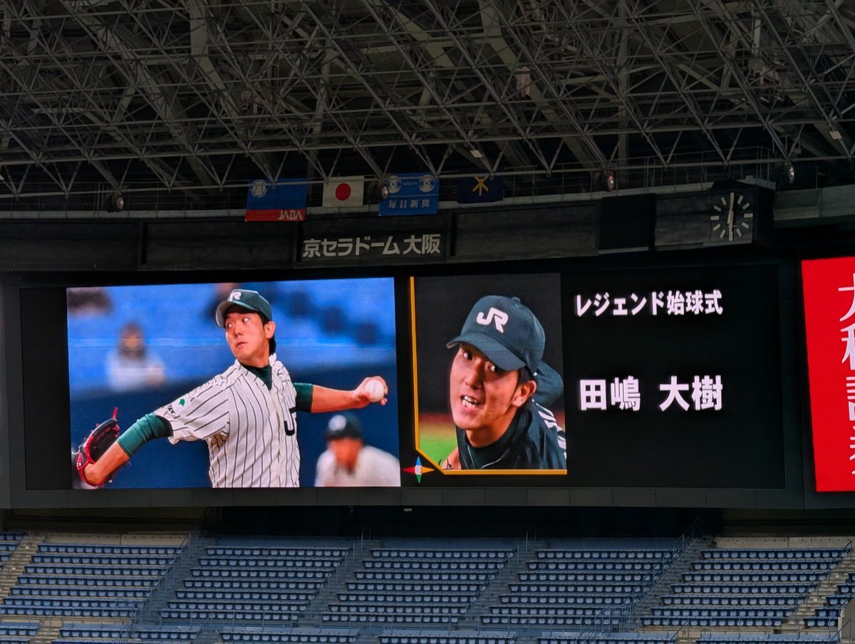 今日のレジェンド始球式は #オリックス・バファローズ の #田嶋大樹 投手です! 2017年にJR東日本の左腕エースとして都市対抗野球大会ベスト8を記録し同年のドラフトで1位指名 チーム三連覇と日本一に貢献し、第一線で活躍中です! #社会人野球日本選手権 #ヤマハ #Honda鈴鹿 #JR東日本 pic.x.com/BPfODivyER