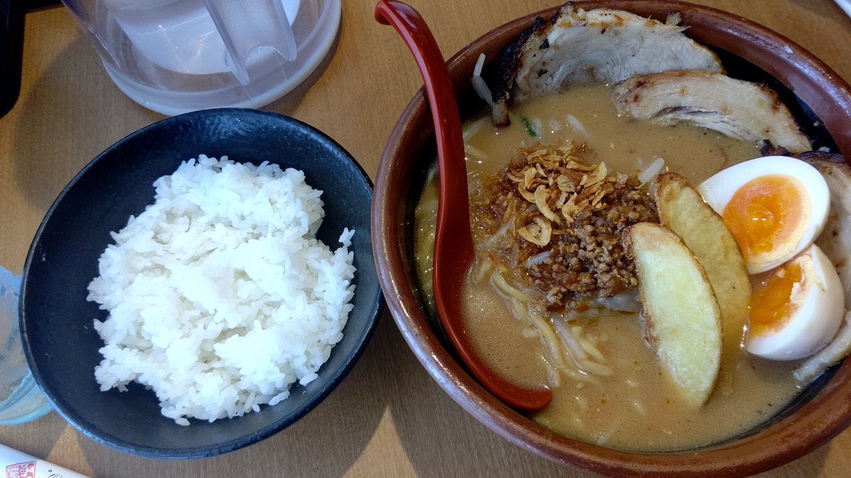 願いを込めて美味しくいただきました。 「良い世来いよ 夢に懸けて」 飲み物はアイスティーではなくミネラルウォーター。 北海道味噌ラーメン 炙りチャーシュー付き からの、王道を征く味玉。 #田所商店 #114514 #いいよこいよ pic.x.com/q7qkQeZmmI