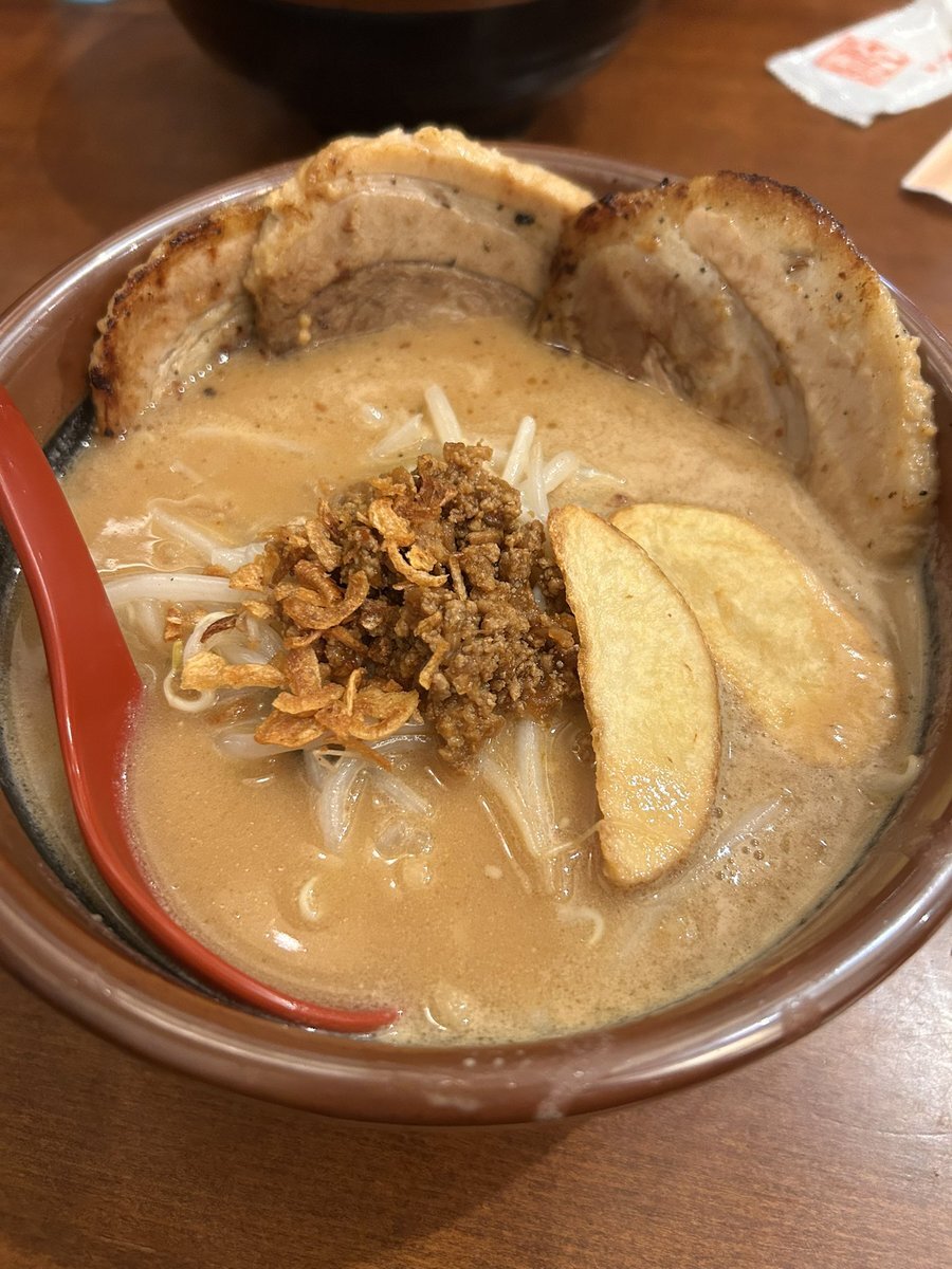 仕事終わり、時間ギリギリかなぁ💦と思いながら お目当てのラーメン🍜屋さんに行くと、なんと!休み😭脳内ラーメン🍜になっちゃったので久しぶりの 田所商店🍜行って来ましたよ〜😋 #田所商店 #北海道味噌ラーメン #炙り味噌チャーシュー pic.x.com/WNQO1ci061