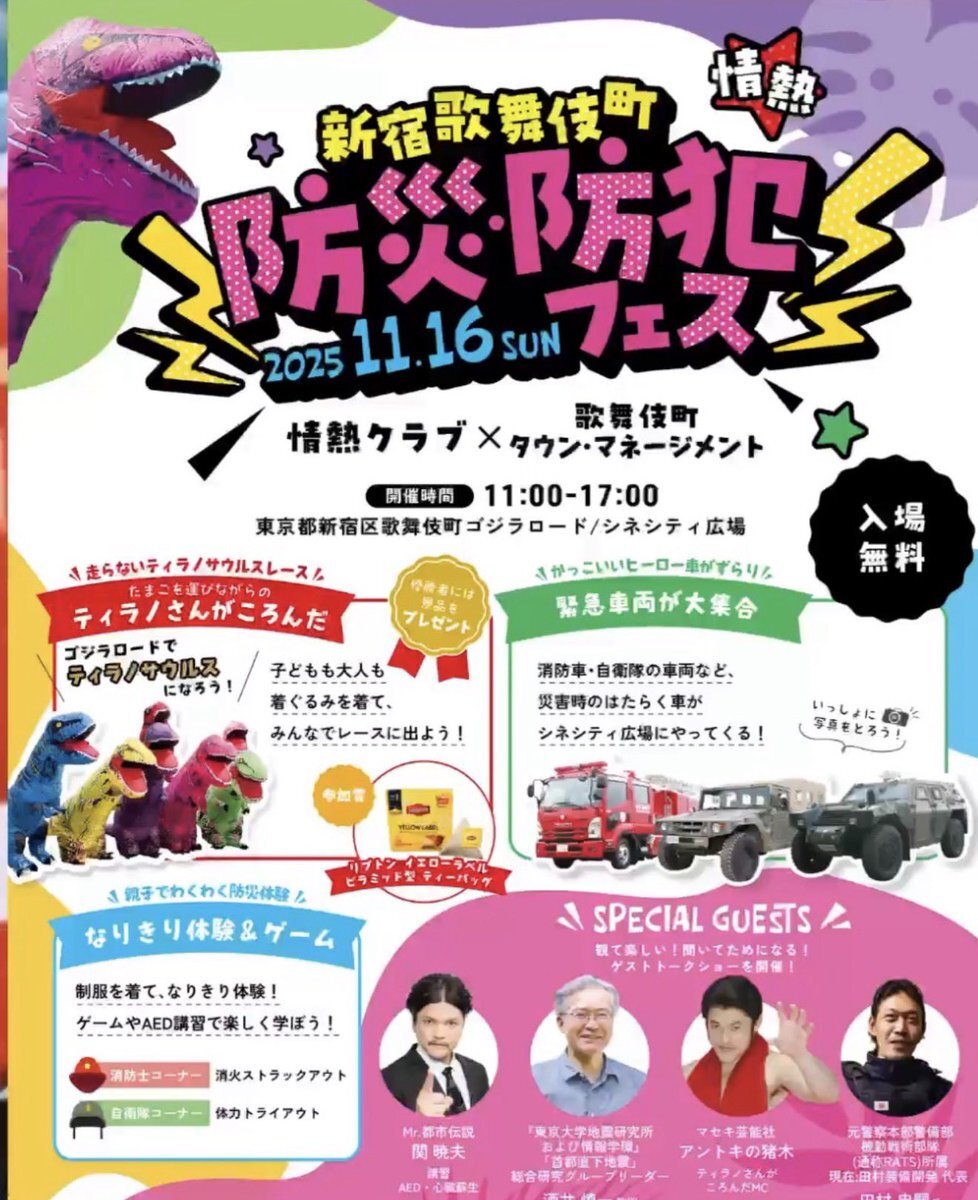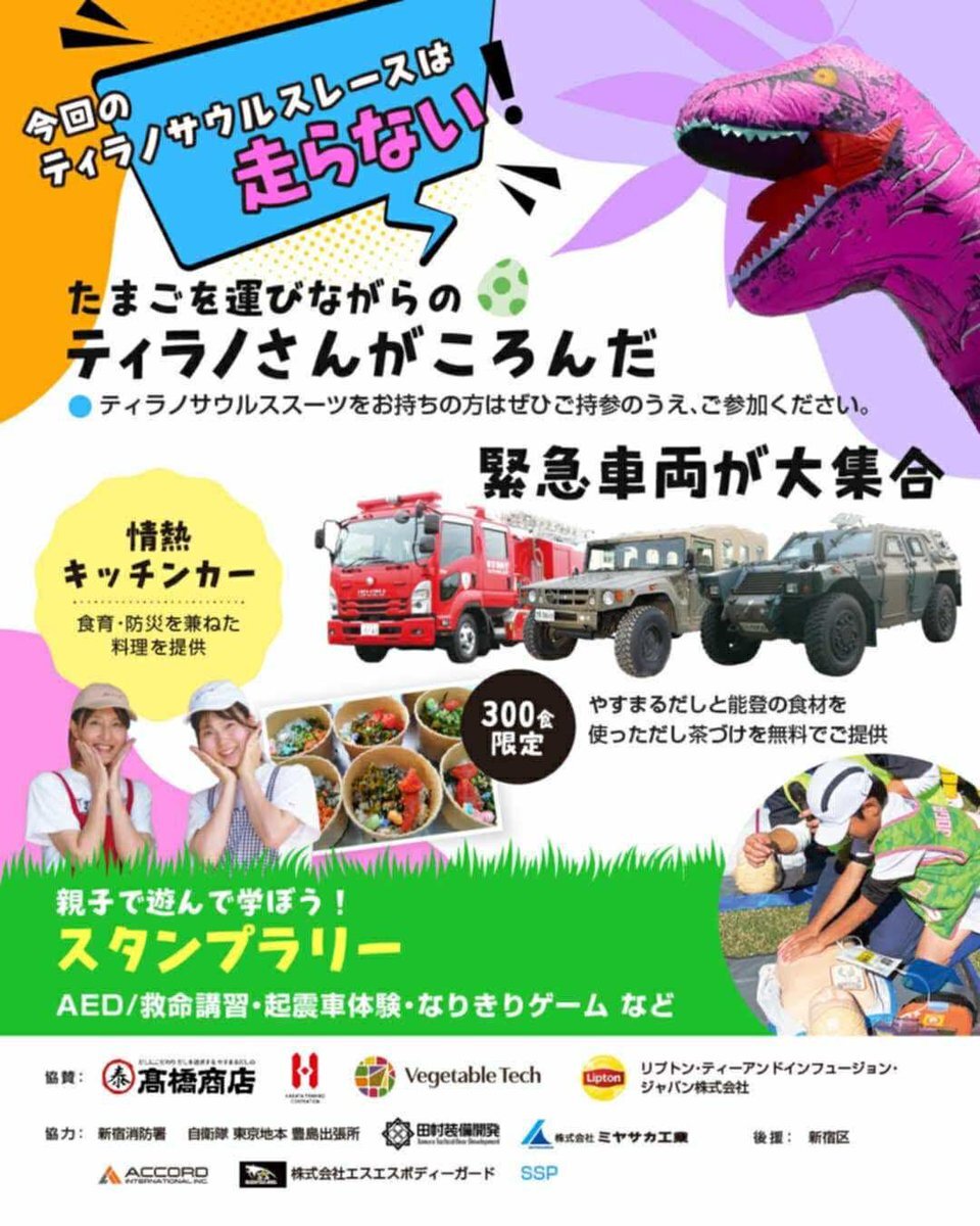3日後は #新宿歌舞伎町防犯防災フェス に集まれ🦖 様々な講習、ゲーム、無料イベント🔥 #田村装備開発株式会社 様、 #情熱クラブ医療班 やけど講習参加者や 他にも様々な無料配布グッズも有り🇯🇵 #ティラノサウルスレース #防犯 #防災 #情熱キッチンカー #こどもブース #情熱クラブ x.com/sabo_san86/sta…