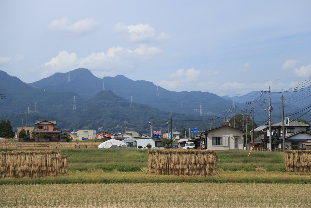 【田園風景】 群馬県吾妻郡東吾妻町植栗 Photo/2025.10.03 稲を天日干しする『はざかけ』の風景。地域によって『はんで』などとも言われます。 #群馬県 #東吾妻町 #田舎の風景 pic.x.com/CYwoFUmJQ2