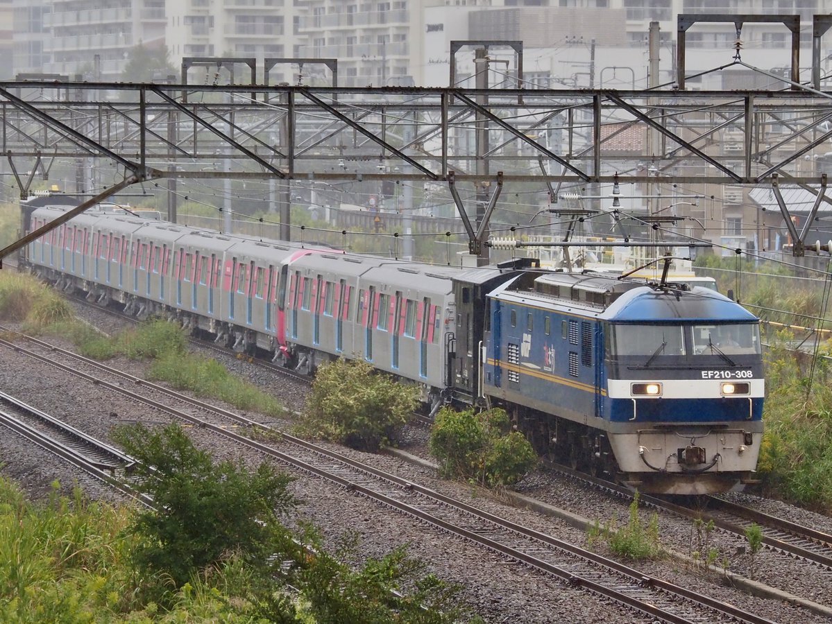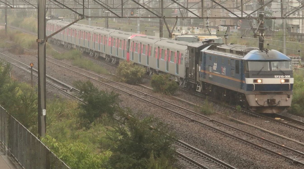 都営大江戸線12-600系甲種輸送 雨が降る中での撮影 25.10.11 9597レ EF210-308 都営12-600系 #甲種輸送 #EF210 #都営大江戸線 pic.x.com/4OmnqA2biW