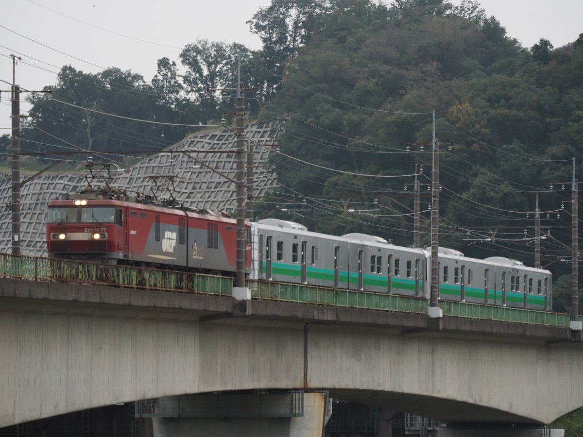 #EH500-77 + #HBE220系 2025年10月16日撮影 きょうのHB-E220系 盛岡向け #甲種輸送 です。J-TREC横浜出場。自分の予定が詰まっていて、辛うじてここで追いつけました pic.x.com/DmcXrTkWkK