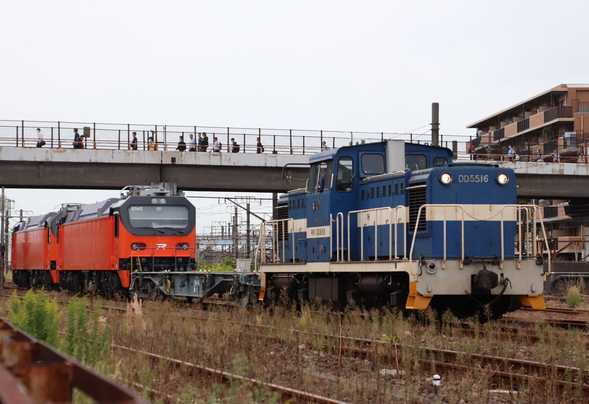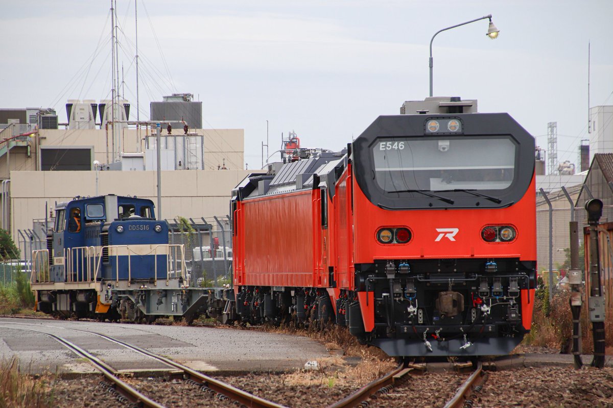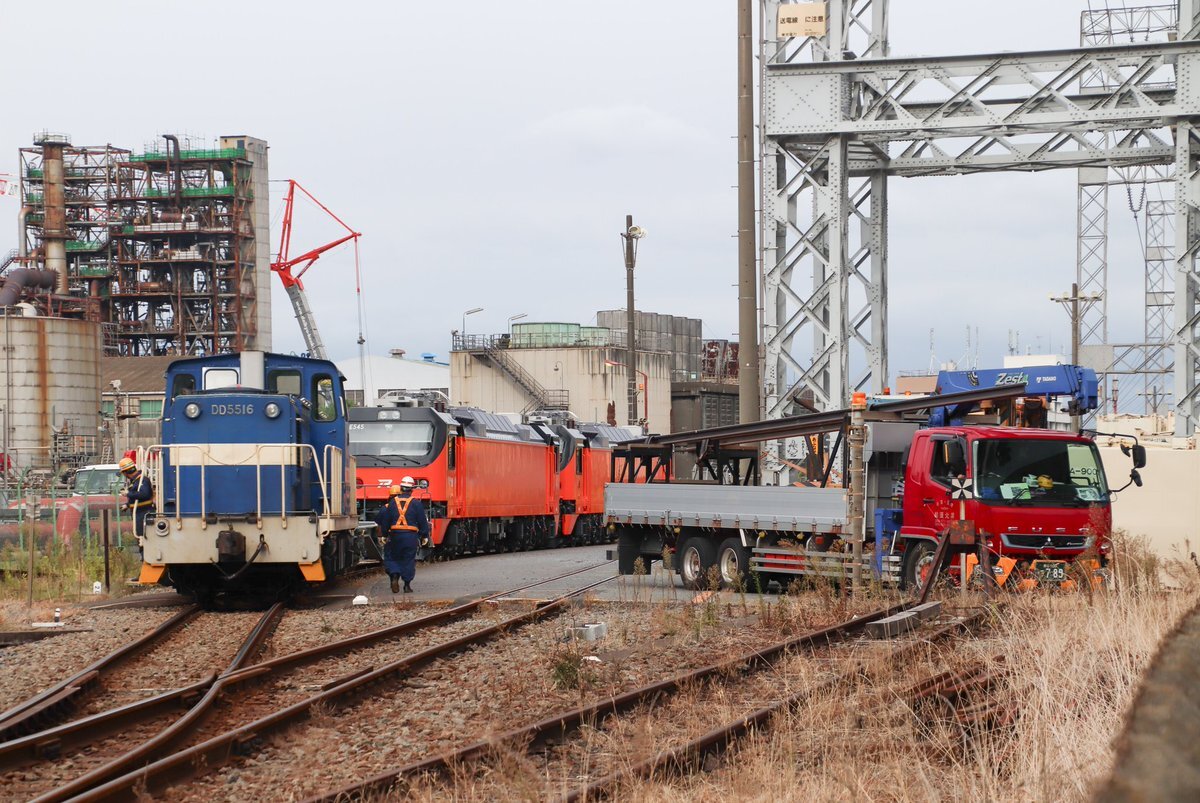 藤沢など各地でモスク建設で揺れ動いているさなか、 台湾甲種撮影。 #神奈川臨海 DD5516+ #台湾鐵路 E545+E546 末広町でトラックと並ぶ 2025-10-09 #甲種輸送 #TaiwanRailway 台湾独立 pic.x.com/95dPZiumrs