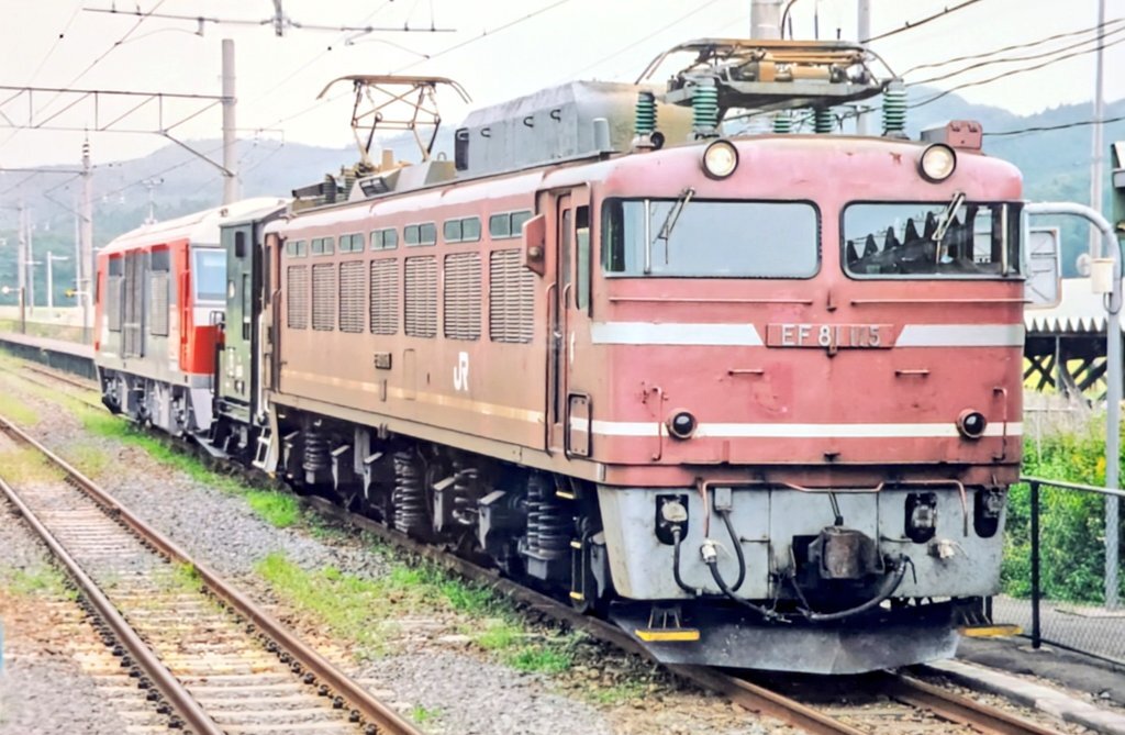 [甲種輸送 撮影日時不明] EF81 115(富山)+ョ8000+JR貨物DF200型電気式ディーゼル機関車(鷲別機関区配置)@羽後亀田駅。 ョ8000は秋田貨物駅まで連結。 #EF81 #DF200 #ョ8000 #甲種輸送 #羽後亀田駅 pic.x.com/klH4sZ3zYu