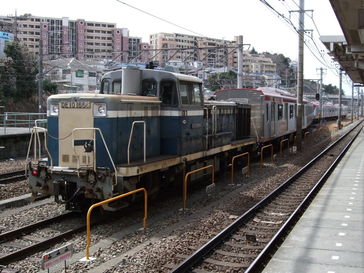 「我が家に眠るちょっと懐かしの鉄道写真シリーズ」 DE10の青い貨物色に牽かれてやってきた東急6000系 @長津田駅2008.3.21 #DE10 #貨物色 #東急電鉄 #東急6000系 #甲種回送 #甲種輸送 pic.x.com/ockidtN5FE