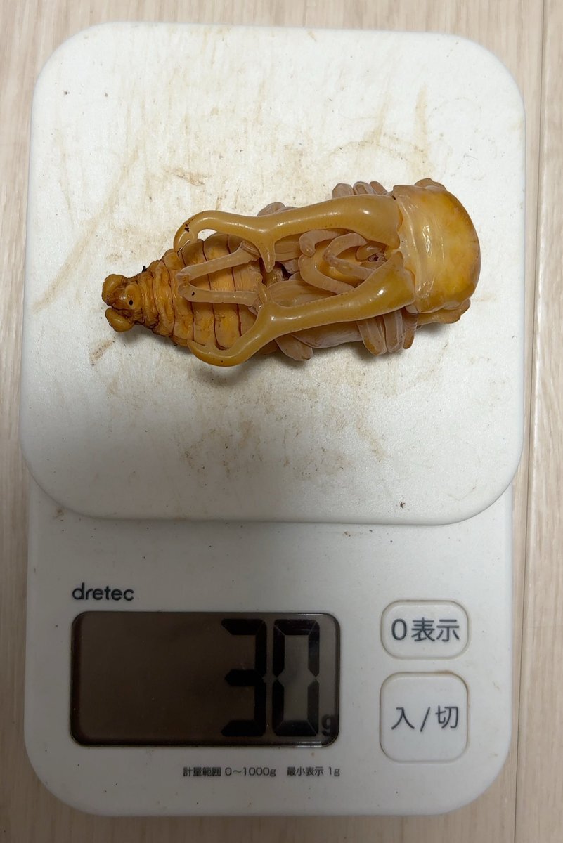 FF-FF136•U71U6I × No138•FF-T117OAKS 前蛹159g蛹化✨ 蛹室内測定215mm‼️‼️‼️ (ギリ触れないところで計測したので写真より1mm引いています) 圧巻のサイズです💥‼️ 難しいのは承知の上ですがサナギの形状は綺麗なのでワンチャンを期待したいところです🙏🙏🙏 x.com/don__hercules/…