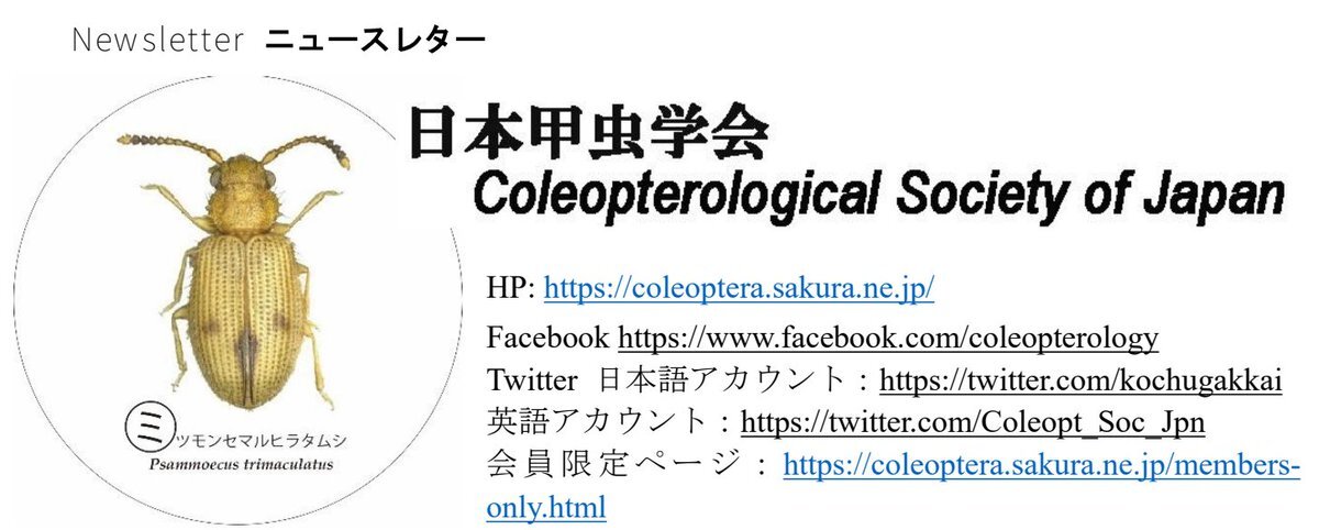 #甲虫学会 ニュースレター77号 coleoptera.sakura.ne.jp/newsletter/CSJ… - 倉敷大会: 11月15-16日 参加・懇親会申込み最終締切11/9(日) - 地域甲虫自然史第8号「宮崎綾調査観察例会2023・24報告 」 - 地域年末例会(東京・大阪) - 2025年度学会賞 #Coleoptera #beetle #beetles #甲虫 #entomology pic.x.com/f1Bf60SBFi