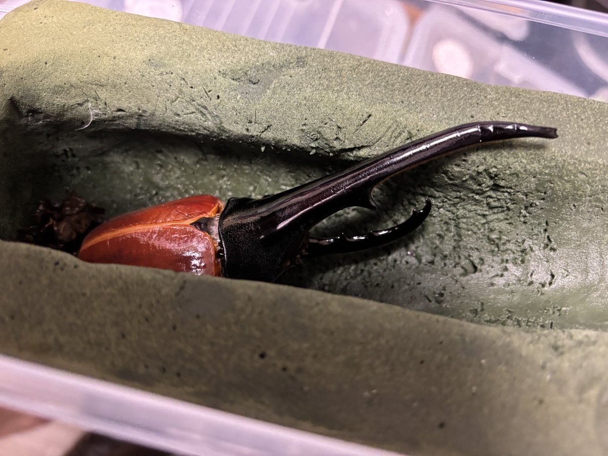 ◆ギラファ ケイスケ◆ マット飼育 強制早期羽化♂2頭101mmと93mm @aquarius_646464 アクエリアスさんよりプレゼント企画で頂いた♂と我が家累代の♀との子孫 遺伝子レベルが大幅に上がったのが分かります😭 ありがとうございます🙇♂️ ♀の余品販売を別途させて頂きます🙇♂️ #クワガタ #ギラファ x.com/kurimaru_SB_B/…