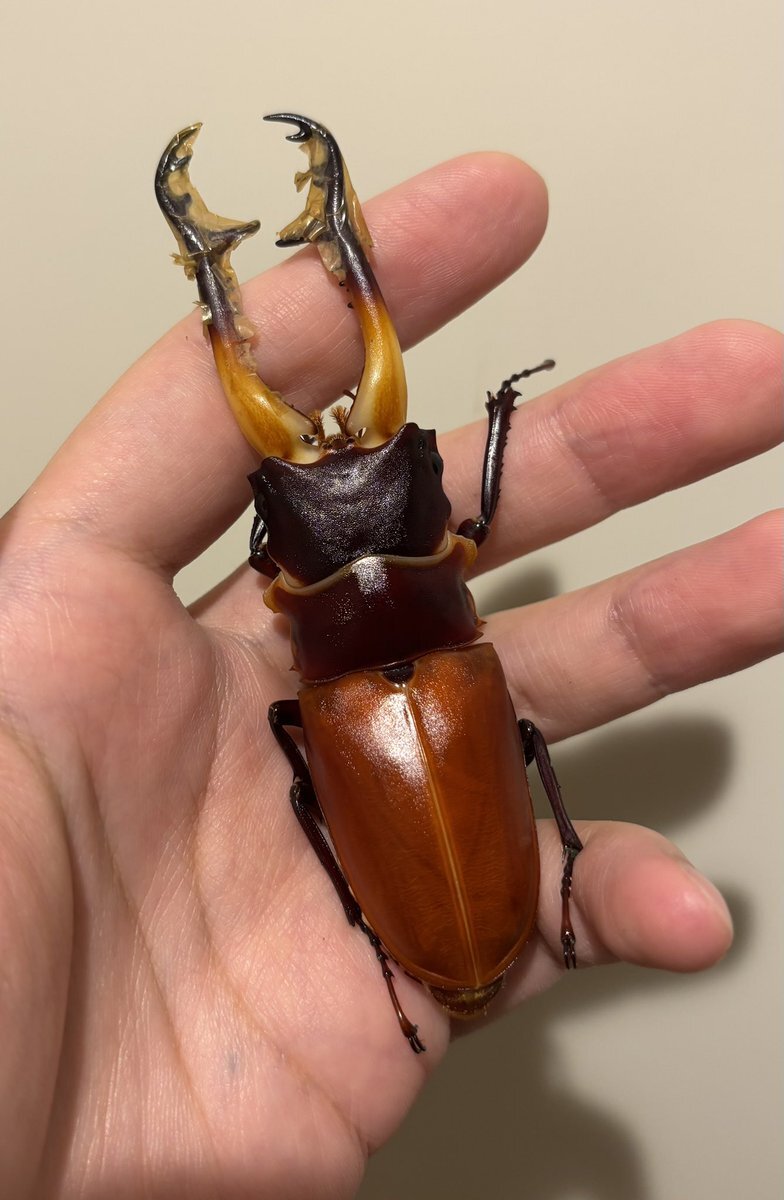 これは中々良いアゴしてます✨ 110mmup有無位ですかね🫣 rushマット飼育 ケイスケギラファ ♀51mmup余品 10月後食 1頭だけおりますので 気になる方はご連絡下さい🙋♂️ ♀単2,000円 引用元101mmの種付も出来ます #昆虫 #甲虫 #クワガタ虫 #ギラファ #ギラファノコギリ pic.x.com/Qizg8UKUIw x.com/kurimaru_sb_b/…