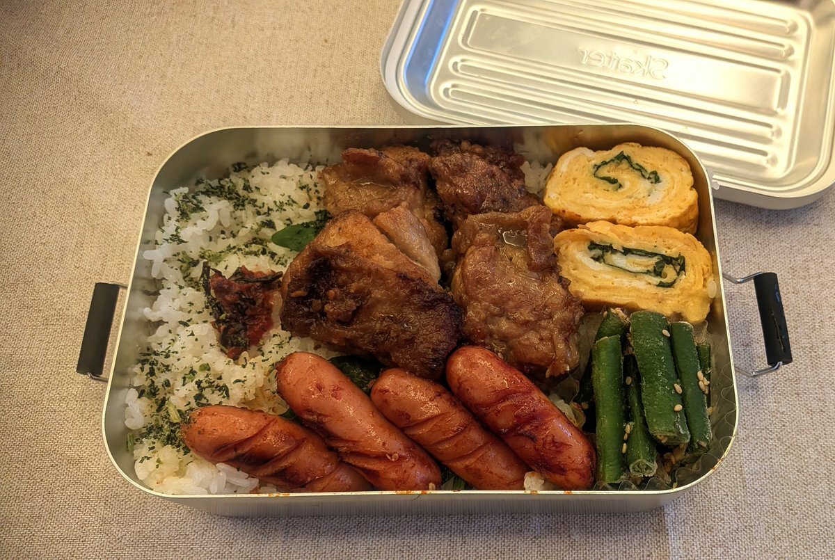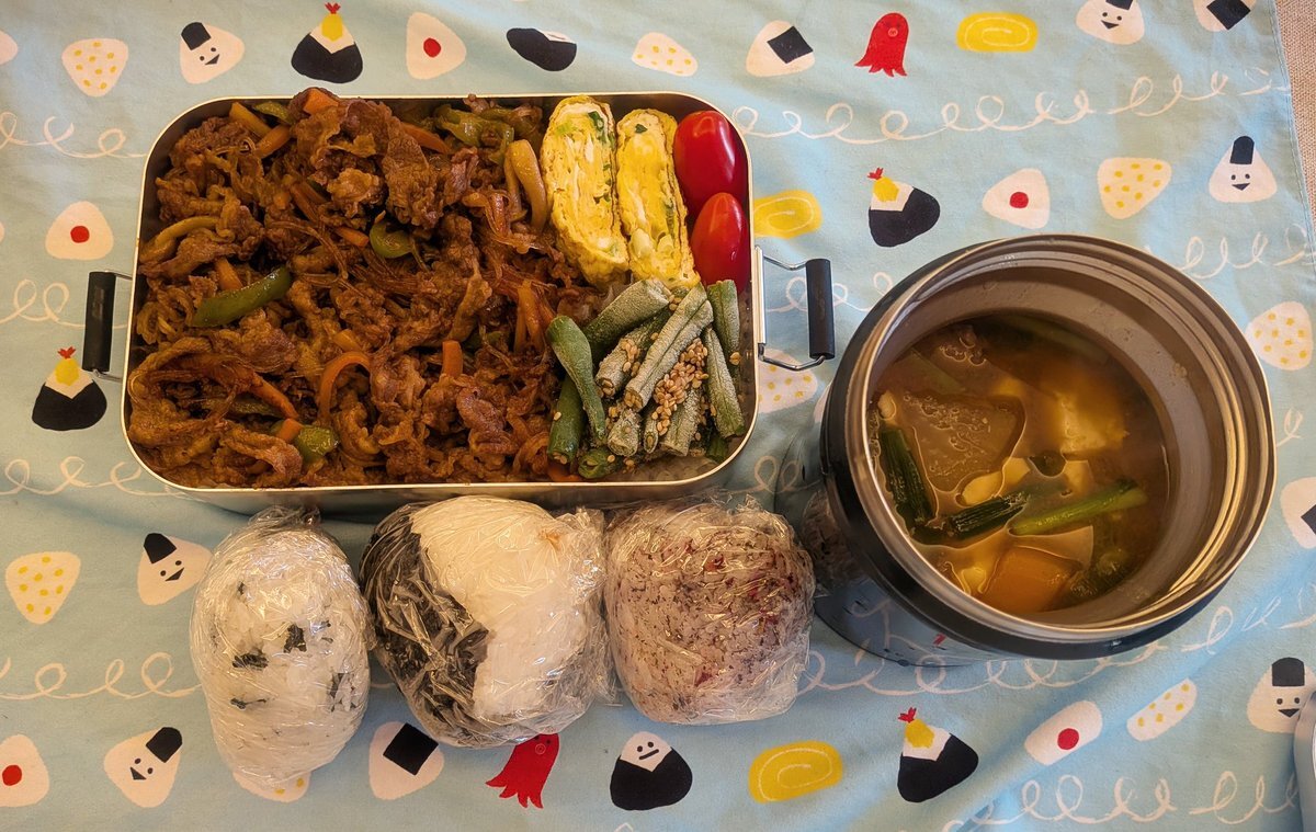 11/11(火)30分残り物弁当 これにリクエストでおにぎり4個つけてスープジャーに豚汁…「休み時間と部活後用なんだ!」と。最近ますます食欲がとんでもない。夜炊いた米4合が空って… #お弁当 #男子校 pic.x.com/fAKHviE6mA