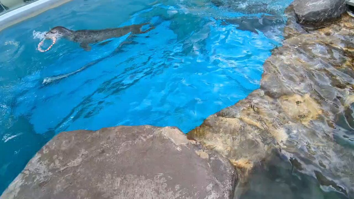 おそらく噛むクセを直したいから輪っか練習タイムなのに ジャンプ特訓したからトレーニング終了だと思ってるボ ボ🦭輪っかは返さないのだ! #男鹿水族館 #男鹿水族館GAO #ゴマフアザラシ #ターボ pic.x.com/4erdyhP5hg x.com/popvirus0111/s…