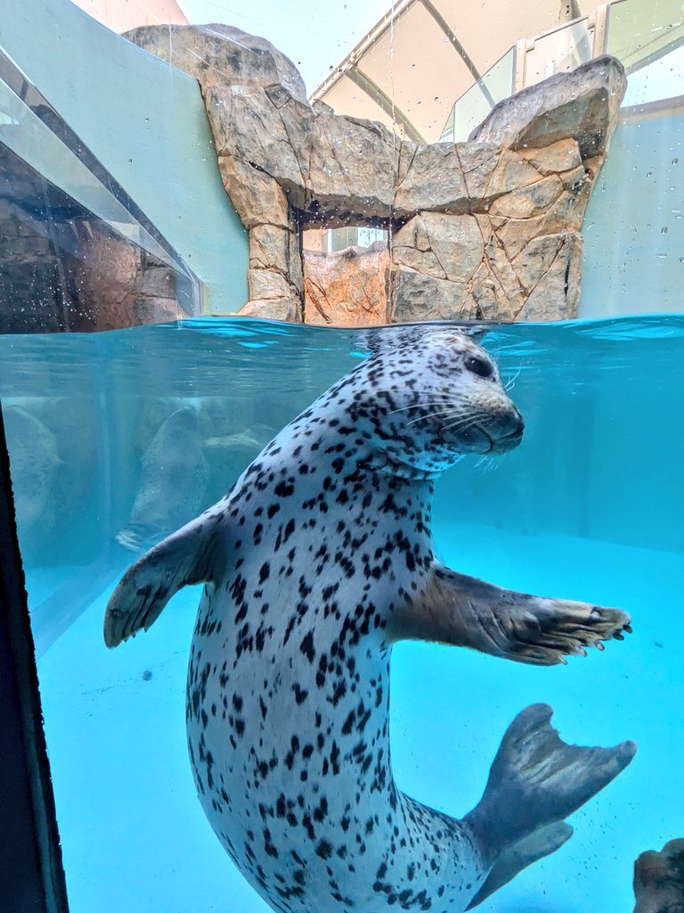 ポジション決め中のターボ。 時々ピチピチ跳ねるから一瞬「タボって魚だっけ?」と思ってしまった。 #男鹿水族館GAO #男鹿水族館 #ゴマフアザラシ pic.x.com/gYDrbRYiOq
