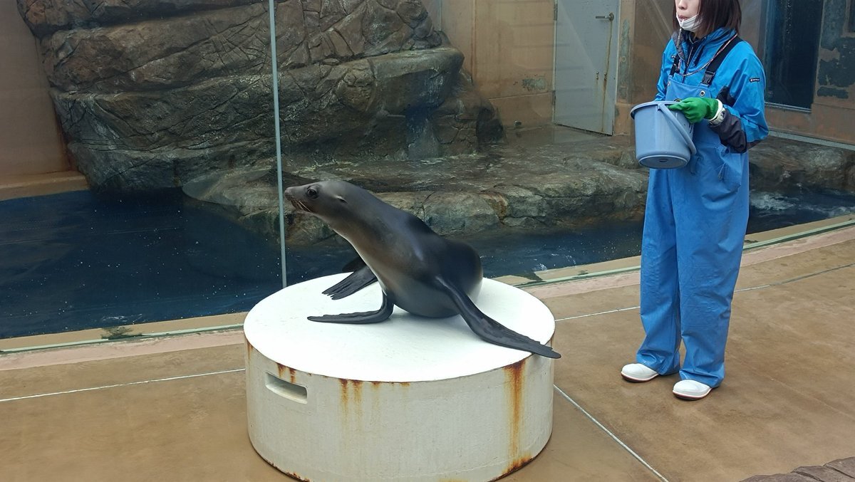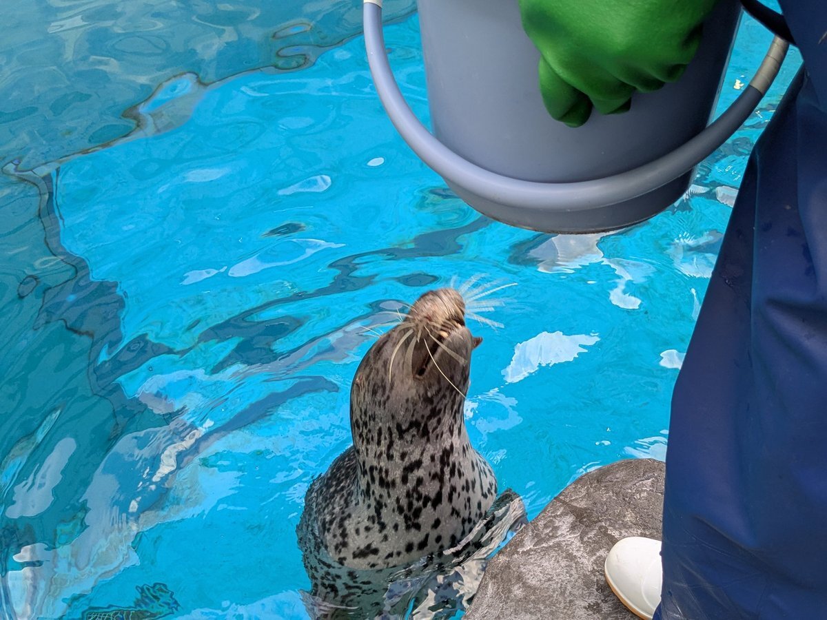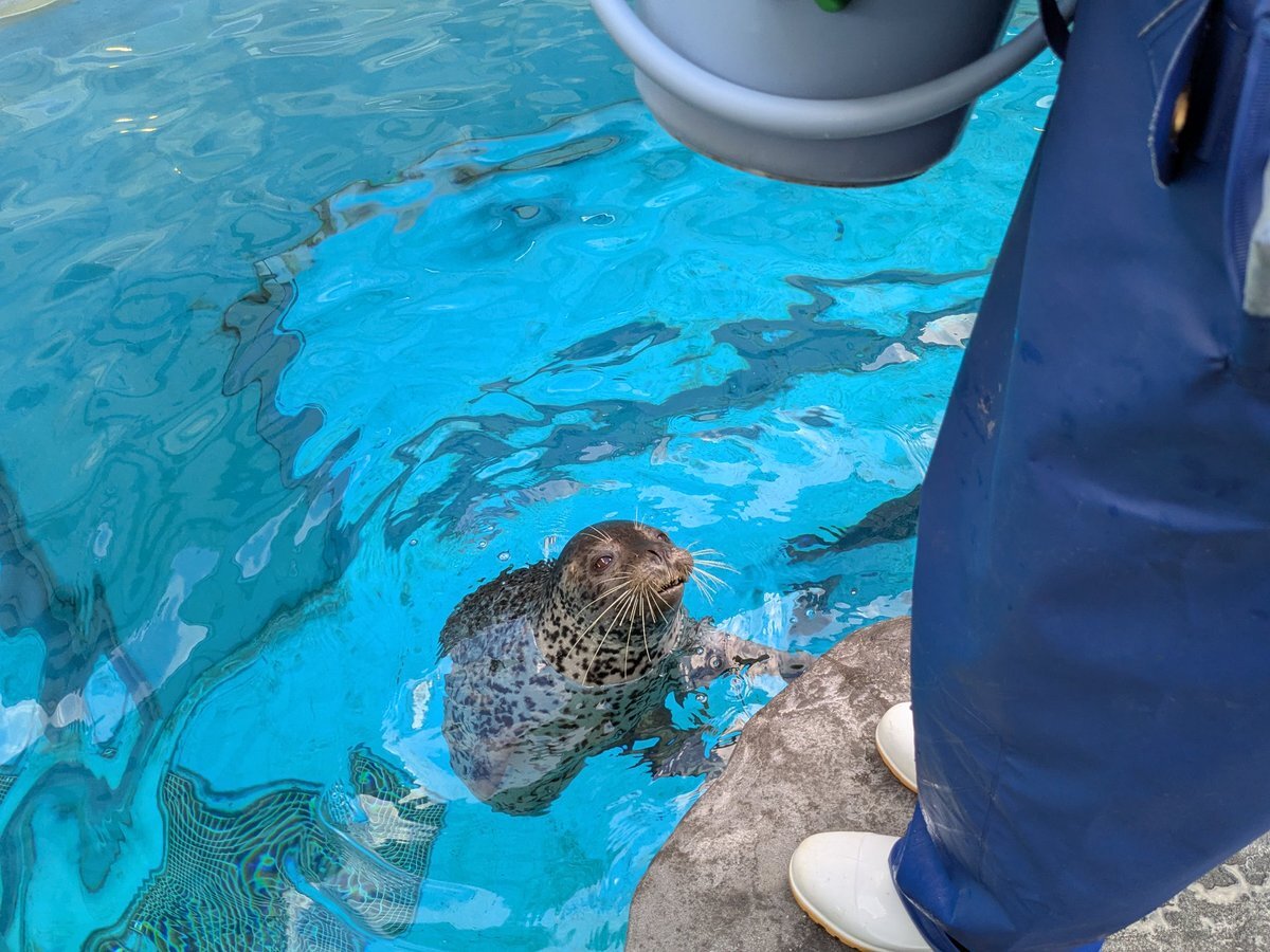 ボあまりにもターゲットを見ていない 『たぶんこの辺で出てくればいいのだジャンプ』で ペンギンお姉さんに↖️ジャンプと笑われていた😂 #男鹿水族館 #男鹿水族館GAO #ゴマフアザラシ #ターボ pic.x.com/iJM4zwfnF2