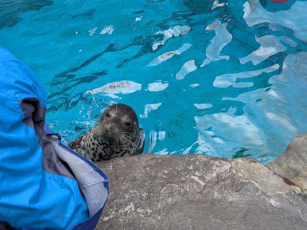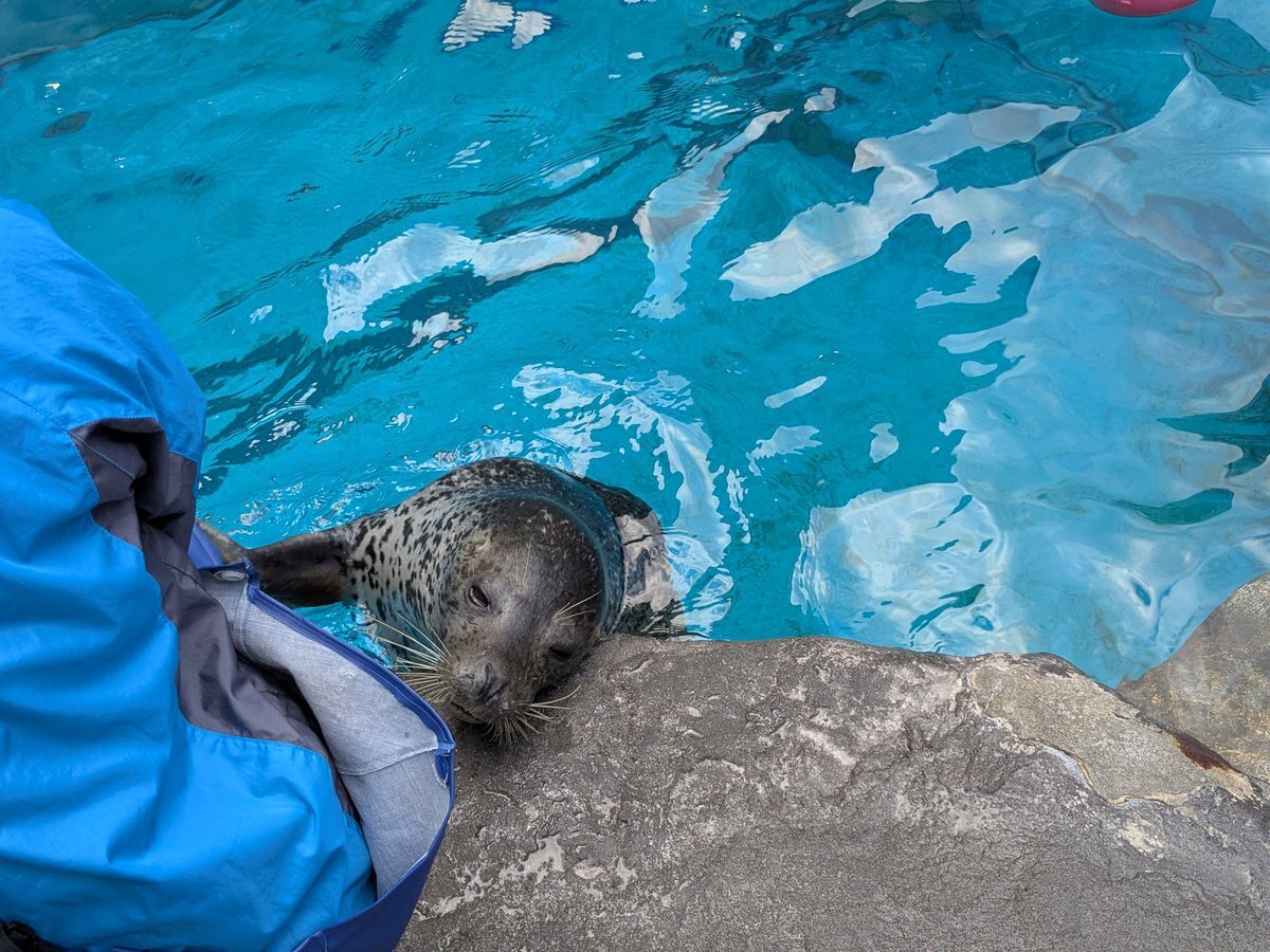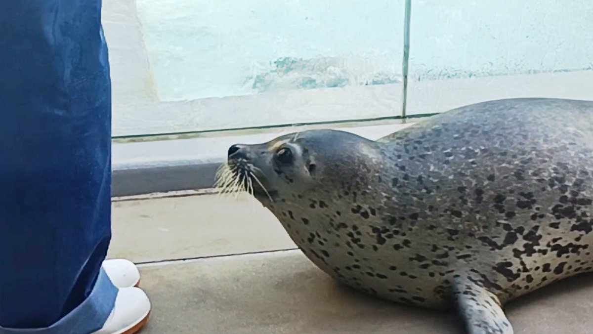 ターボ、その右手はなんなの?とその日会ったアザラーさんとずっと話してた。 #男鹿水族館GAO #男鹿水族館 #ゴマフアザラシ pic.x.com/iATjJkX4P1