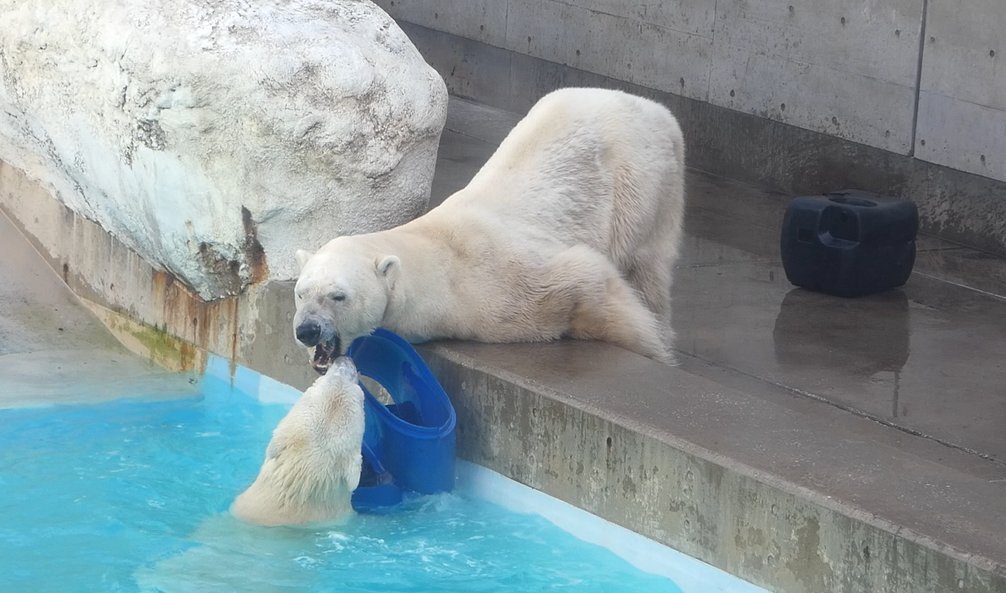 タボとパパの攻防。 🦭「輪っかの方が楽しいのだ🎵」 #男鹿水族館GAO #男鹿水族館 #ゴマフアザラシ pic.x.com/sv9RaW0TkL