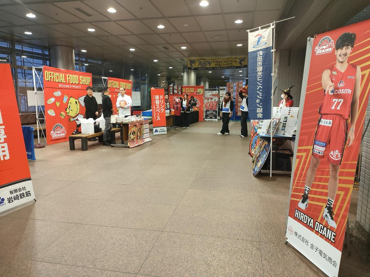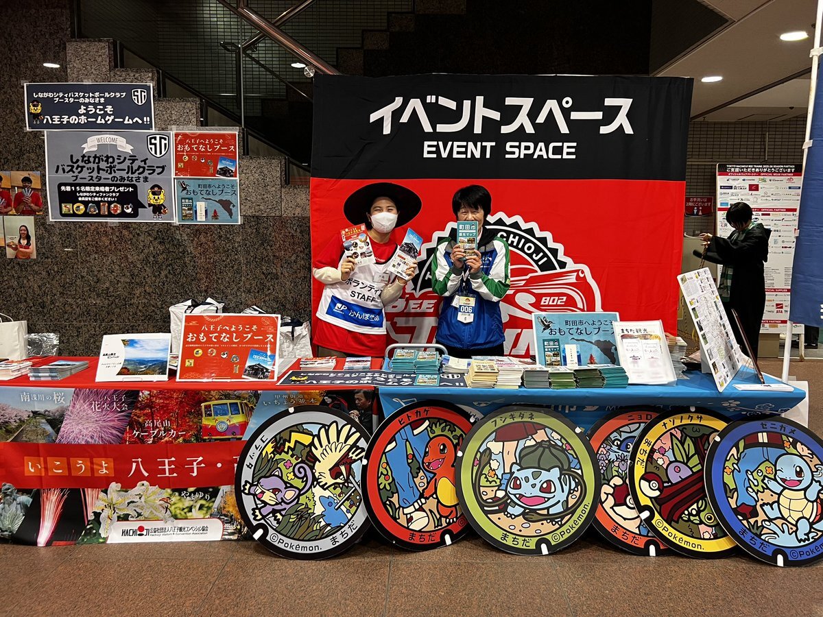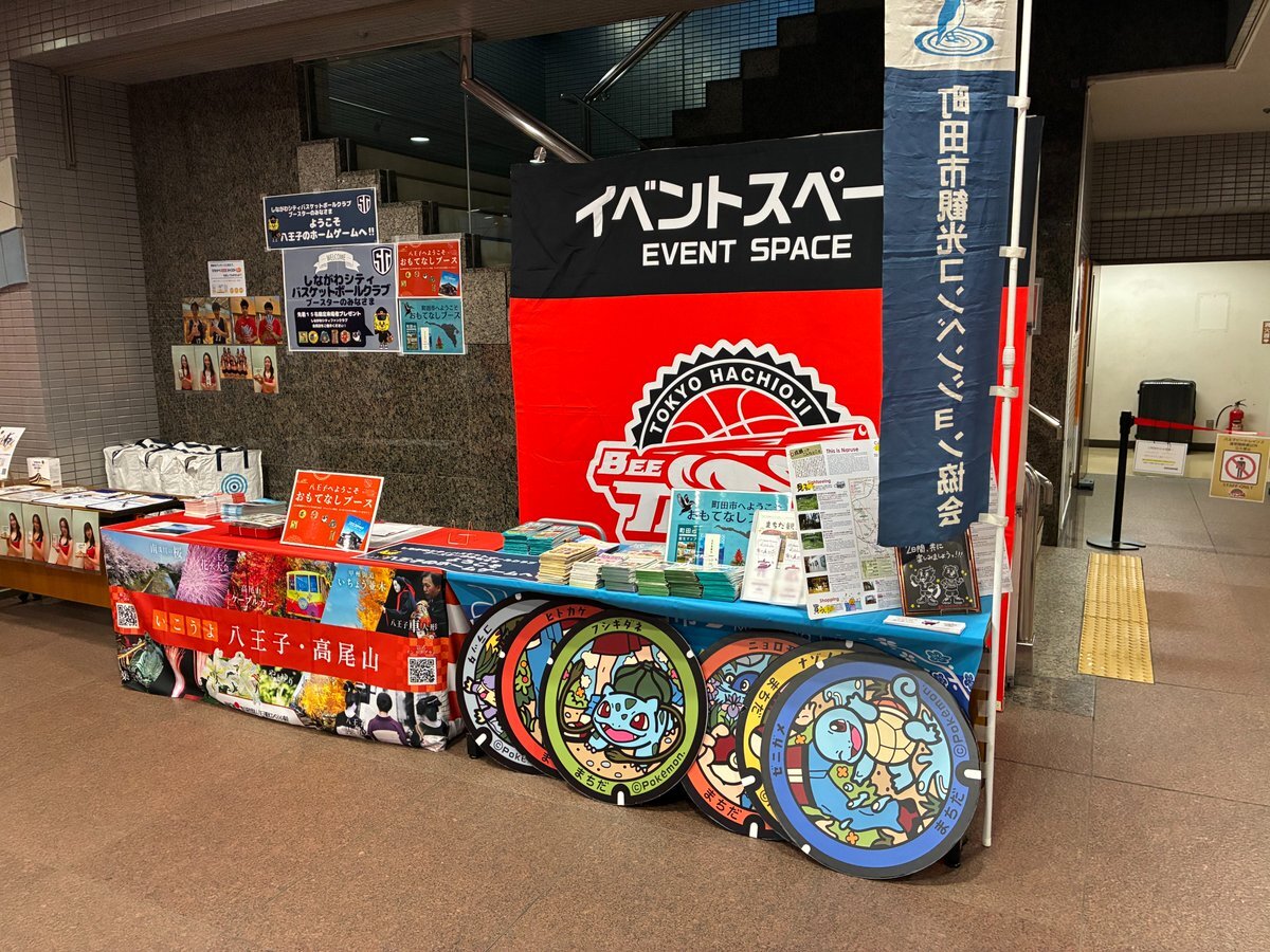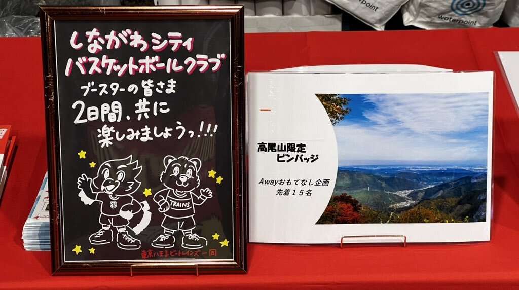 本日のおもてなしブースは #八王子 と #町田 のコラボです! @machida_soutai しながわシティファンクラブ会員の方には #高尾山 ピンバッジをプレゼント! #しながわシティ #八王子ビートレインズ 両クラブブースターの皆様のお越しをお待ちしております!