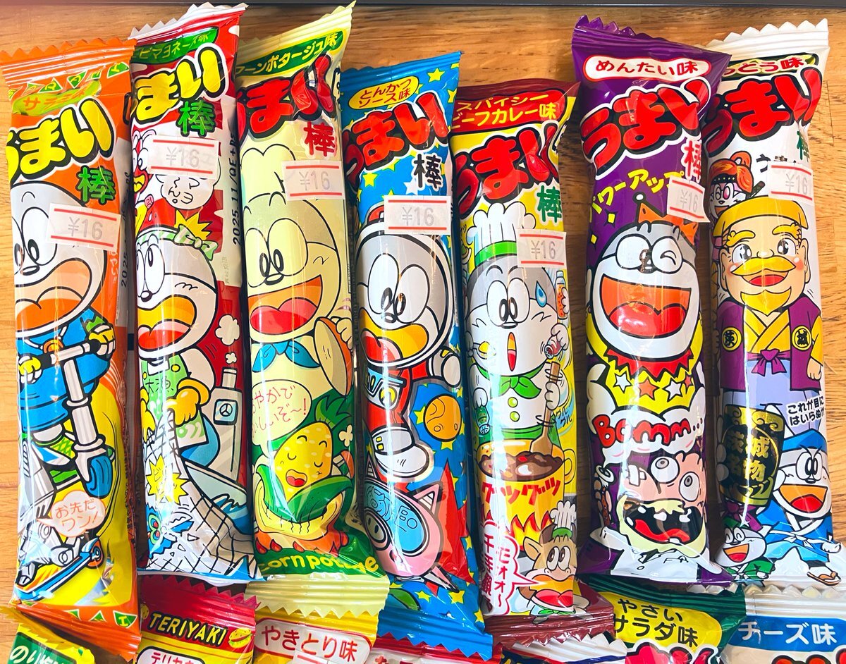 11月11日は、うまい棒の日だそうです👏 コンポタ、めんたい、とんかつソース、たこやき、納豆、やきとり、サラダ、チーズ、照り焼きバーガー、シュガーラスクなどなど、他にも種類がいっぱいです✨ 何味が好きですか😊 #町田市 #成瀬駅 #町田市立総合体育館 #駄菓子屋ともだちひろば pic.x.com/HNpCPlU1Ug