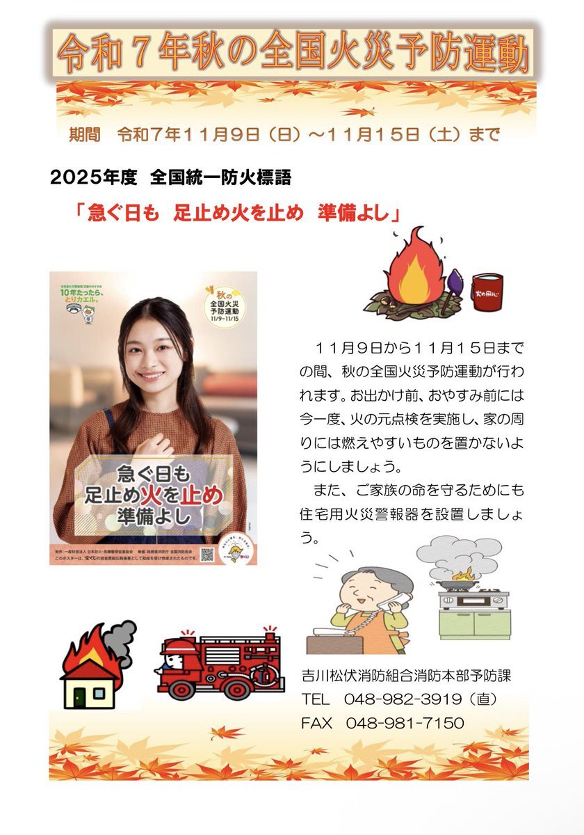 📢【秋の全国火災予防運動】 「急ぐ日も 足止め火を止め 準備よし」 ご家族の命を守るために、もう一度、火の元の点検を。 住宅用火災警報器の確認もお忘れなく! 吉川松伏消防組合の皆さんと消防行政報告。町としての備えも、皆さんと一緒に進めます🔥 #火災予防 #松伏町 #町長 #吉川松伏消防組合 pic.x.com/AdI8nQIzIr