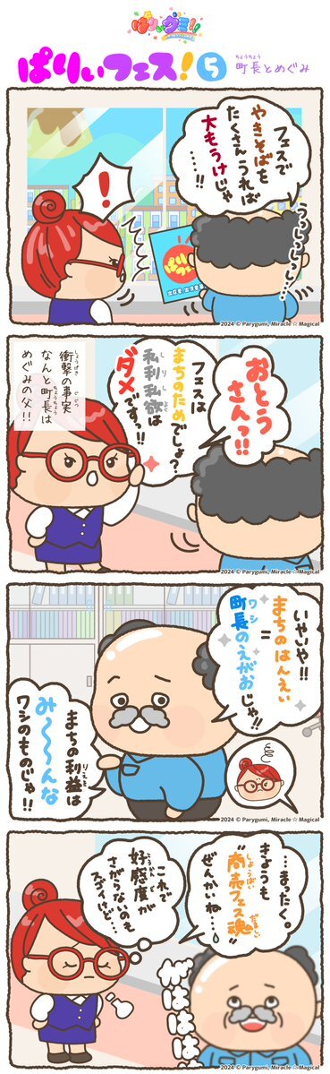 ぱりぃ町に何やら怪しい人物が登場です、、、🫣 #ぱりぃグミ #ぱりぃフェス #町長 #めぐみ x.com/parygumi/statu…