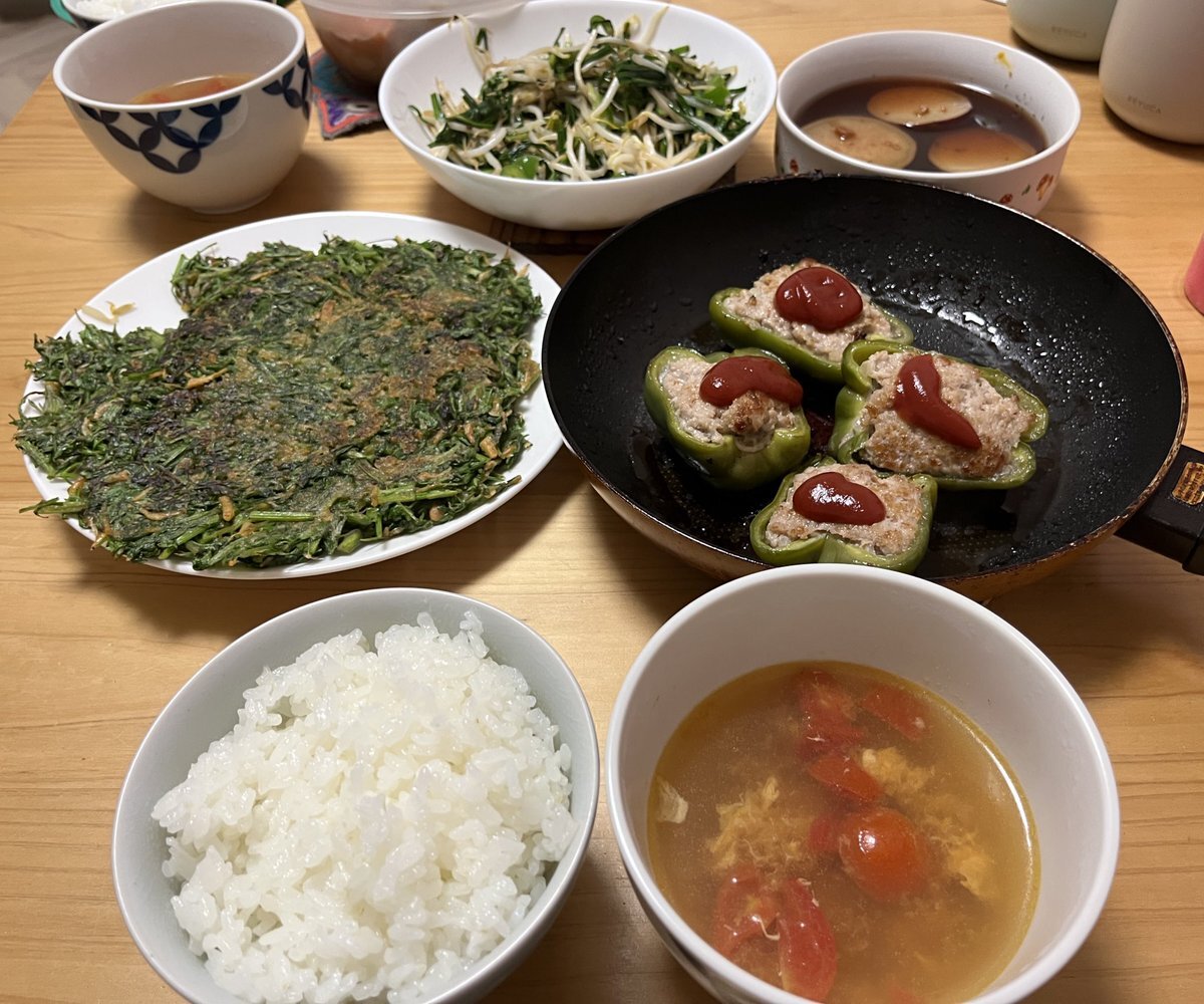 【本日の炊きたてご飯】 にんじんの葉チヂミとピーマンの肉詰めで、モリモリごはん🍚 野菜多めのメニューで、元気チャージ完了✨ #炊きたてご飯 #今日の晩ごはん #家庭料理 #野菜たっぷりごはん #暮らしの記録 #畑とごはん #パンチ広沢の食卓 #広沢家ごはん pic.x.com/Py89nVnHDt