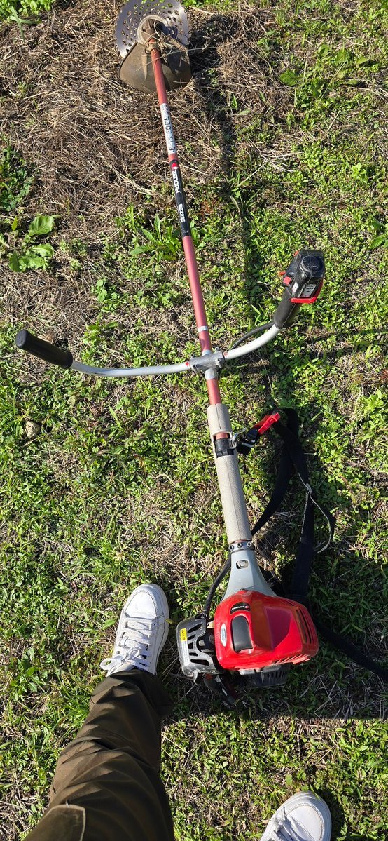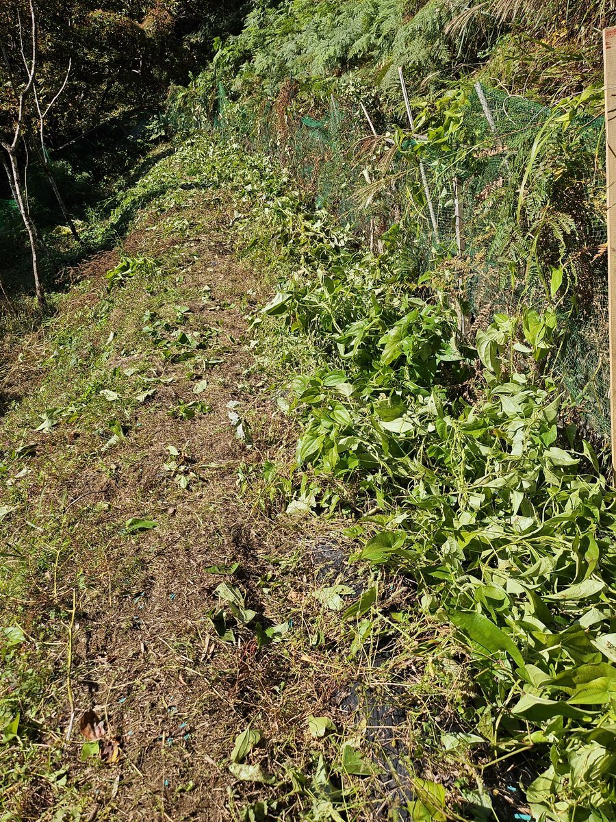 今朝も遅めの #畑仕事 収穫物は無いのですが 丈の長い雑草を春まで放っておかず ナイロンコードで粉砕して 来春耕運機の爪に巻込みを無くす実験をしてみました。 …が、遠巻きに 防災無線からチャイムが鳴り 内容が聞き取れ無い事から大事を取り🐻 支柱回収も半端に切り上げました pic.x.com/qZ3Pwg9Y12 x.com/hir_ish/status…