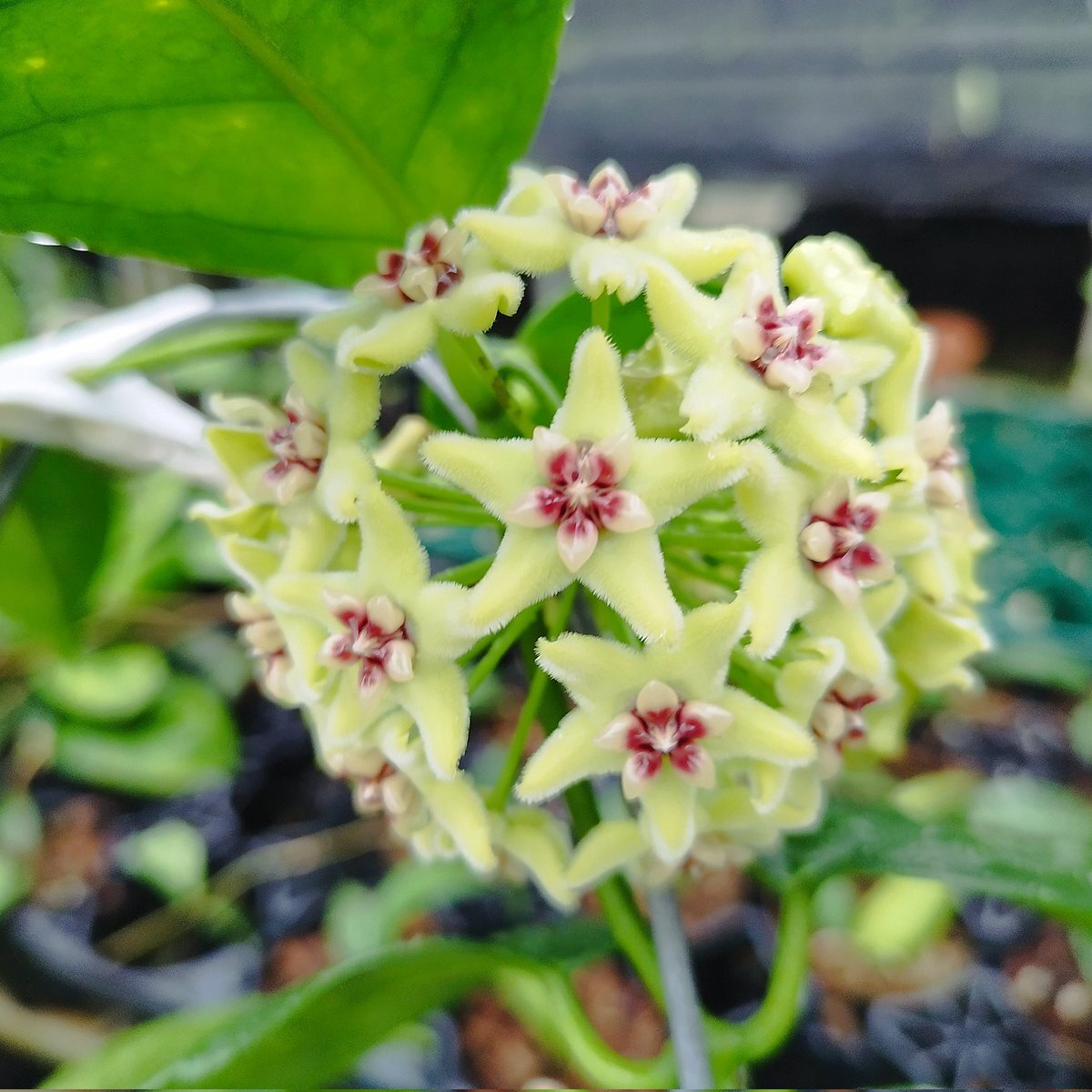 おはようございます♪ 今朝の #沖縄 の天気は雨。 #ホヤアラゲンシス ( #Hoyaalagensis )畑初開花! 思ってたよりも1輪の大きさが大きい! 花色が黄緑なのはまだ咲き始めだからかな? ナーセリーさんの写真ではもっと黄色かったから様子見。 #畑仕事 #サクララン #Hoya pic.x.com/eqSnfCvEZq