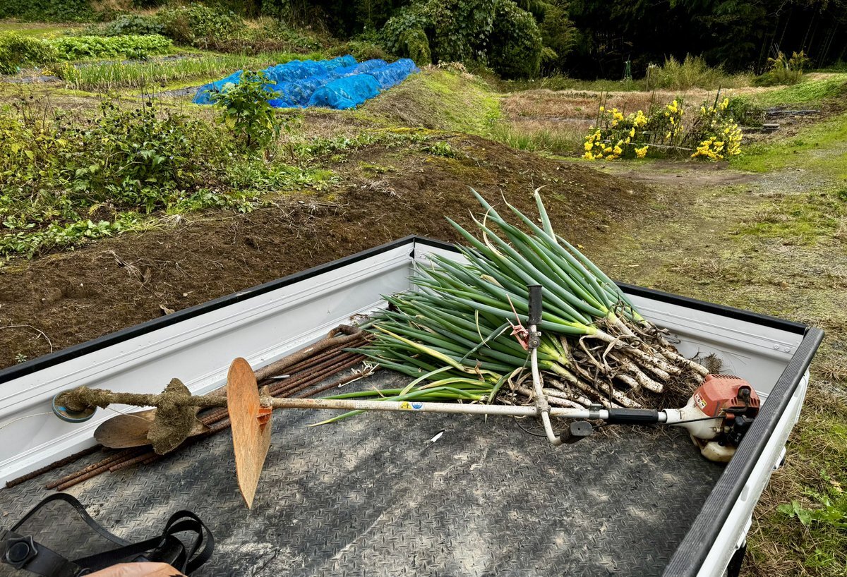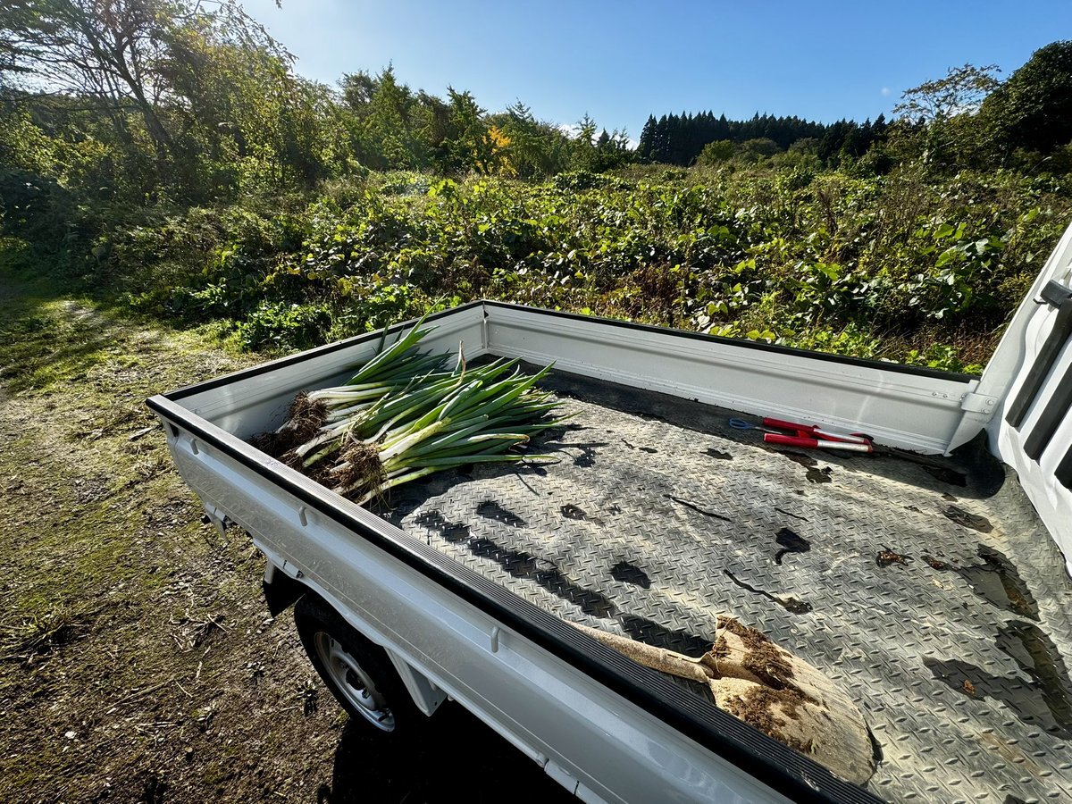 #朝仕事 #畑仕事 残りひと畝のネギを収穫。 市公式情報では、前日となり町の集落で 🐻の痕跡があった模様なんで 地続きでの出現に警戒かつ にわか雨に見舞われたので 土落とし・外皮剥きもそこそこに サッサと荷台に積み込んで撤収。 pic.x.com/YfEBi2UZYo x.com/hir_ish/status…