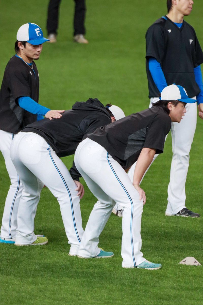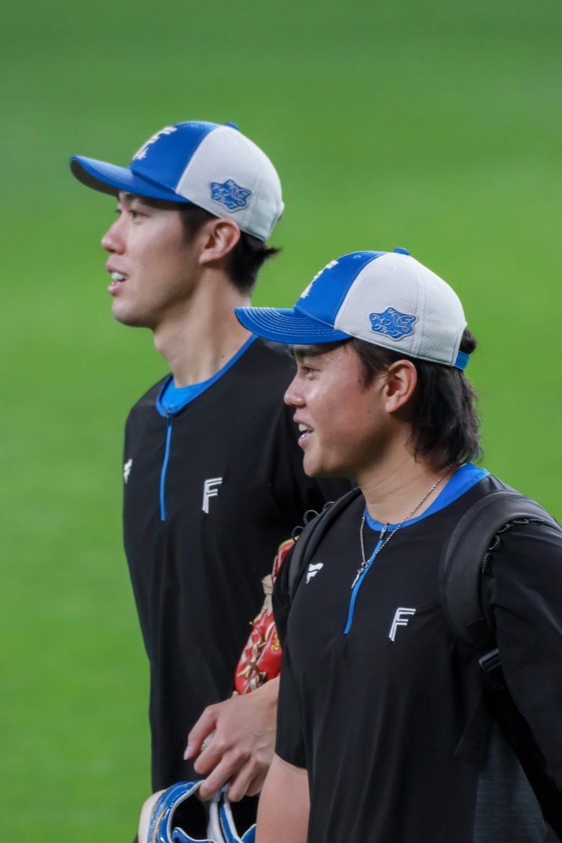 蓮くん、くろちゃん、金村くん 投手村楽しそうに トレーニングしてました!💪✧(笑) #lovefighters #福島蓮 投手 #畔柳亨丞 投手 #金村尚真 投手 pic.x.com/Xzy2HuqyAs