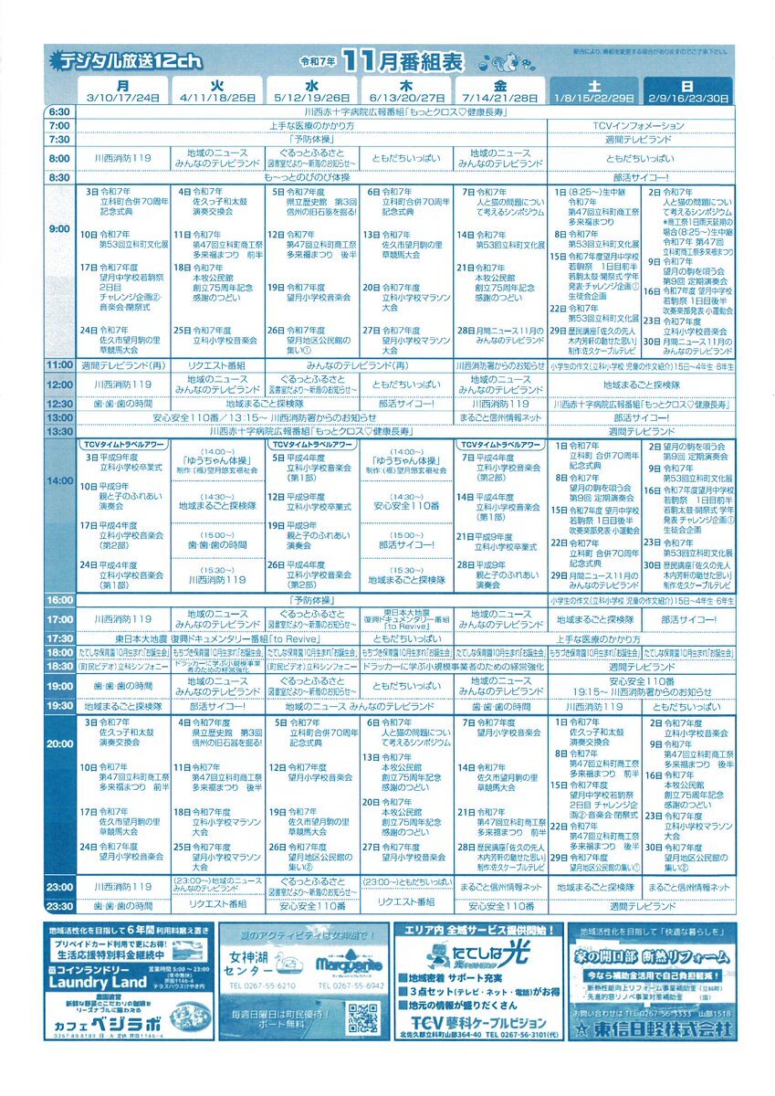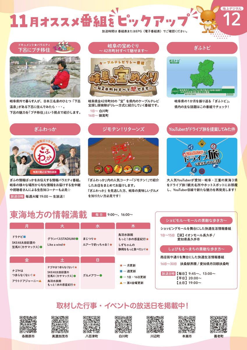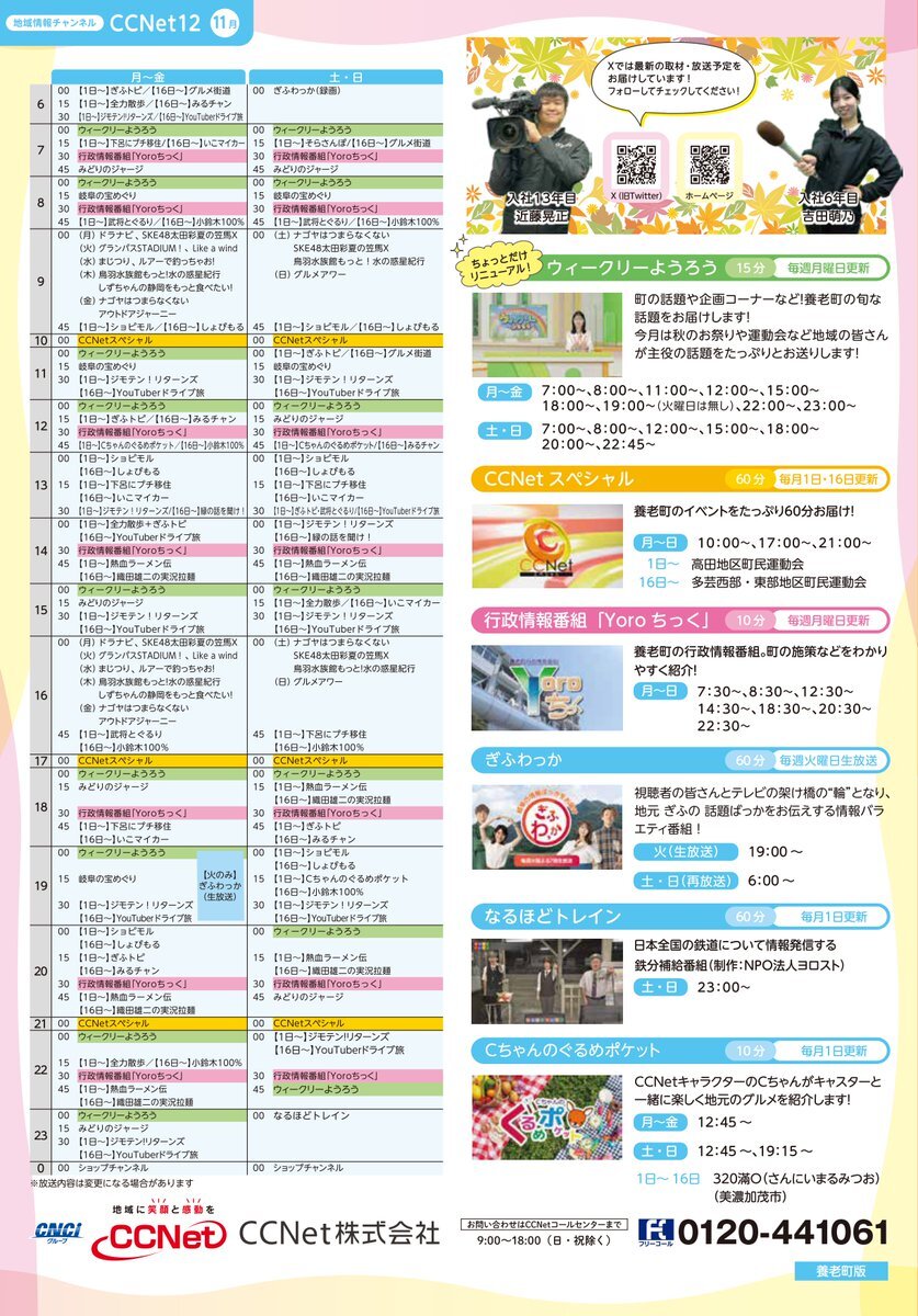 📹地域密着📹 11月の「養老チャンネル」チラシです👀 拡大してご覧ください🔎 毎月15日まで放送の番組もあります! 気になる番組、どうぞお見逃しなく⭐️ #番組表 #養老町 pic.x.com/Bxr8BAIn7v