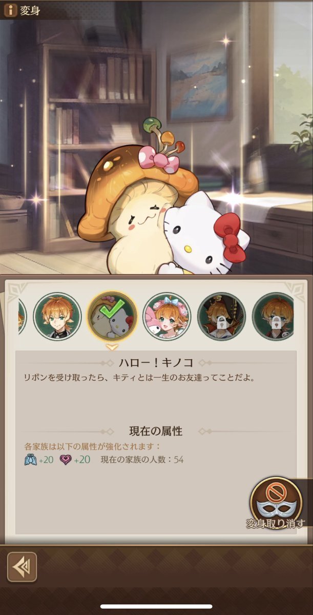 えぇ、課金したんですよ。マイメロかポチャコか悩み抜いて。。でも無料配布されたキノコとキティがこんなに愛おしいなんて。。頬擦り可愛いなぁ🍄 #異世界のんびりライフ #いせのん #サンリオコラボ pic.x.com/GXNfhJf9TM