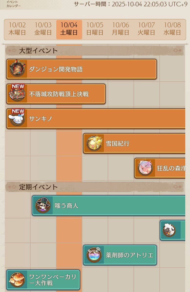 s33イベント暦 ◆大型 9/29不落城決戦 9/30ダンジョン鉱山 10/1サンリオコラボ 10/5雪国紀行 ‼️10/7狂乱の森 ◆定期 10/3嗤う商人 10/5 アトリエ キャンプ ◆ランキング 10/5 家族の親密度 学校ミッション #異世界のんびりライフ #いせのん x.com/nyozosan/statu…