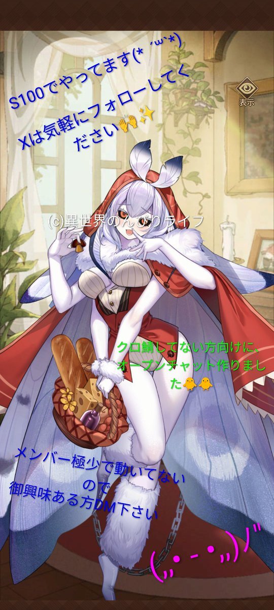 #異世界のんびりライフ 好きすぎる子育て中ママです*\(^o^)/* 雑垢のはずが、殆どいせのん垢に💦 好きな個人作家様のRP多め💦 ※S100でやってます。 ※不落城とか大型イベントでフレンド登録出来ない方々とお話したくてオープンチャット作りました。 人が居なくて困ってるので興味ある方DM下さい🤲🏻💞 pic.x.com/7XiNtNY0kS