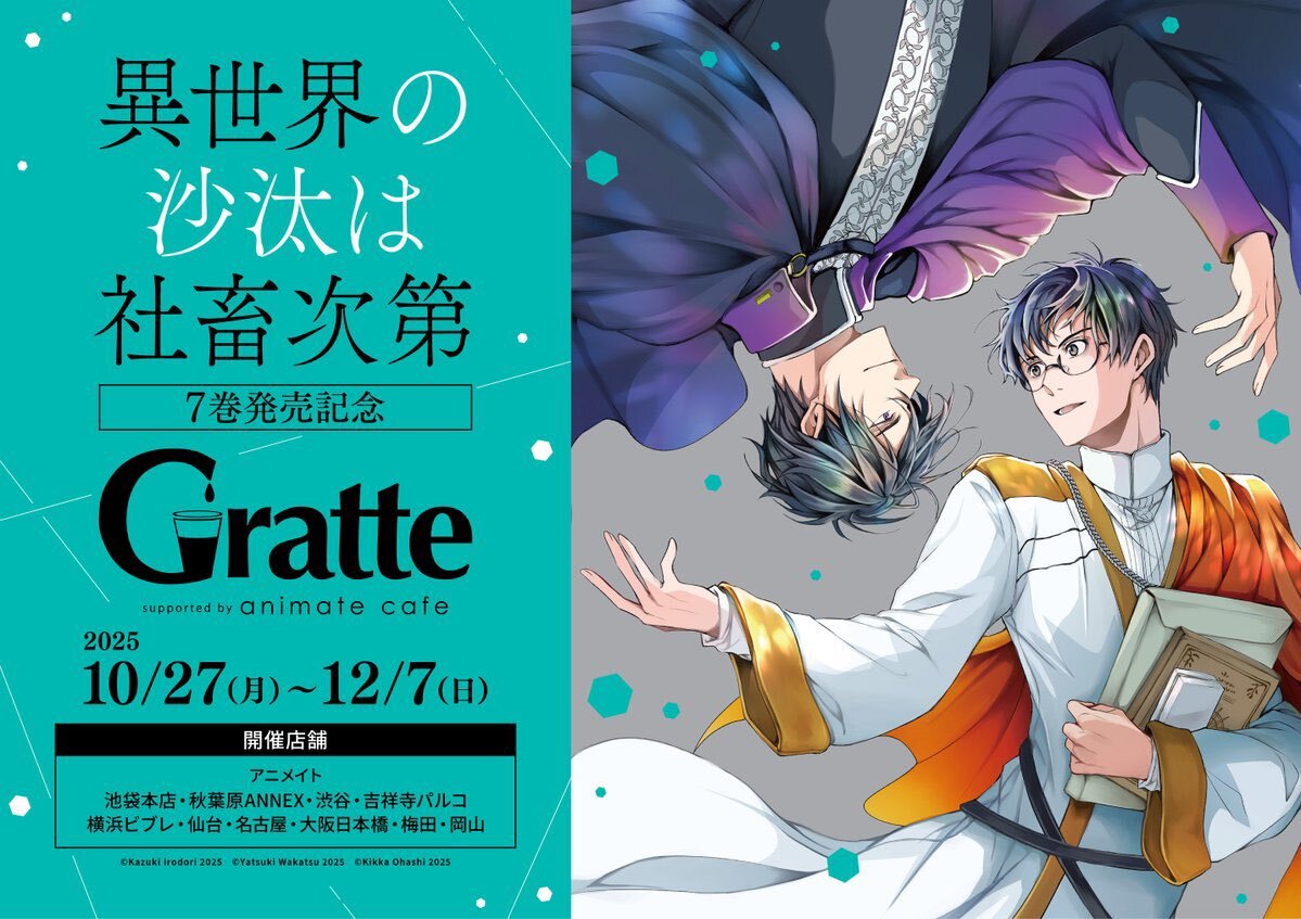 【「#異世界の沙汰は社畜次第」7巻発売記念 #Gratte 】 最新刊発売に合わせて、 10月27日(月)~コラボ開催決定🎉 選べるラテ・クッキー・アイス 12種 有償特典アクリルコースター 12種 オンラインセット をご用意いたしました🌟 さらにコミックスとの連動購入キャンペーンも✨ お楽しみに❣️