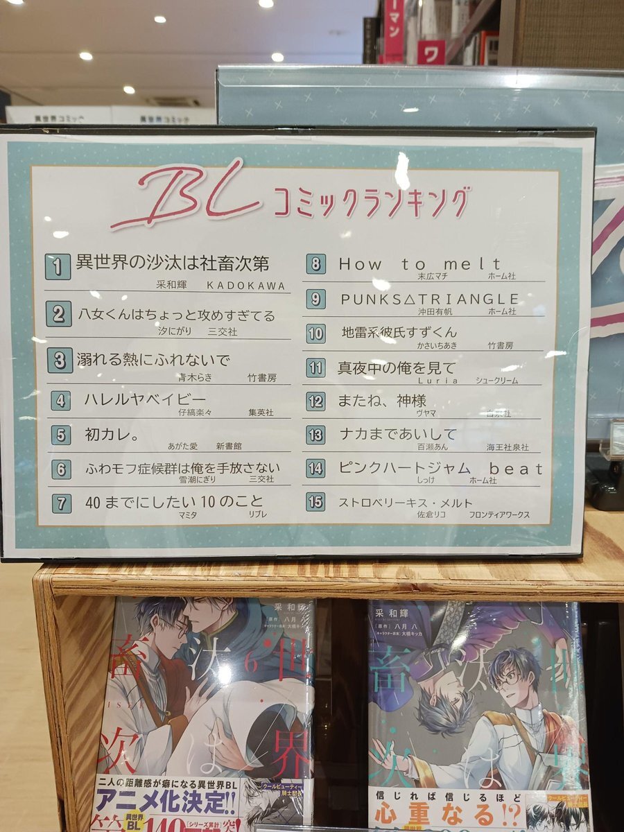 【BLランキング】 11月後半のランキング更新されました! 1位は #異世界の沙汰は社畜次第 です! 来年1月にアニメ化されるタイトルなのでぜひチェック👀✅ #TSUTAYA #徳島 #書店 #田宮BOOK #超コミツタ pic.x.com/6n9ln3tBEh
