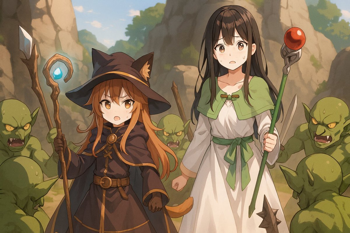「ねえ、チカちゃん?ここ、どこなのかしら…」 「曲作りの呪文と間違えて、転移魔法使っちゃったの」 #異世界転移 #AIart pic.x.com/ddWcv2NSU7