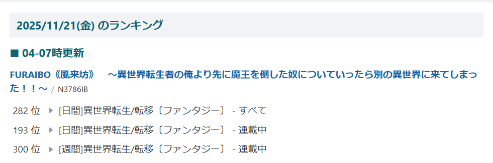 連続して日間ランキングに乗りました! いくつもの世界を旅する多世界冒険物語 『FURAIBO《風来坊》』ぜひ一読を! ncode.syosetu.com/n3786ib/ #小説家になろう #小説家と繫がりたい #拡散希望 #小説宣伝 #narou #拡散希望RT #異世界転生 #異世界転移 pic.x.com/MYMDSpaaho